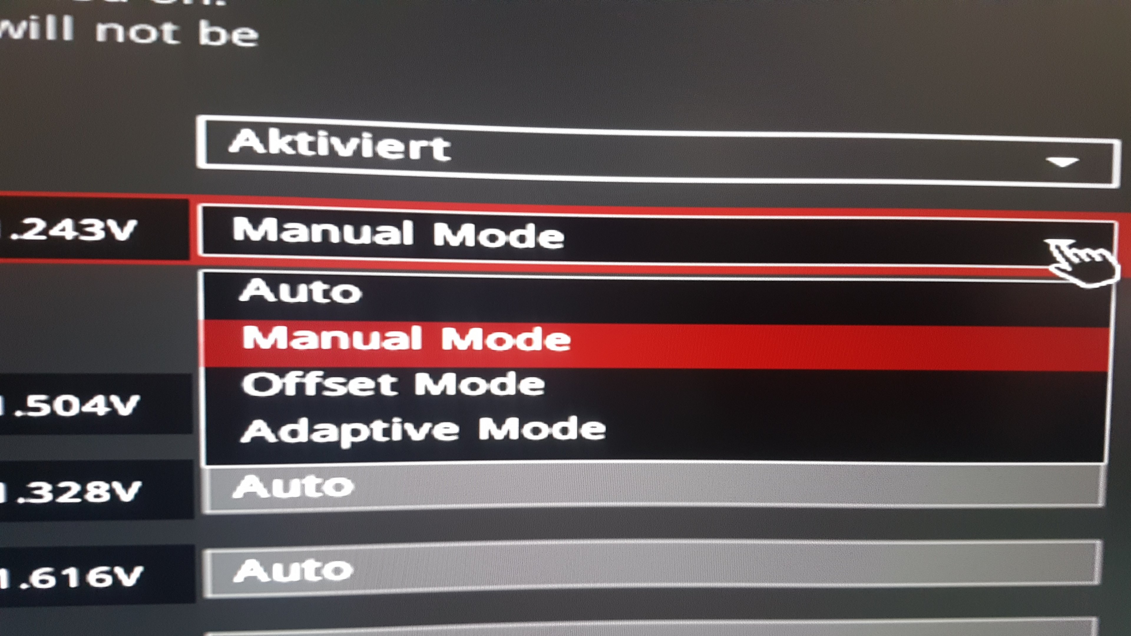 Den die Einstellung Manuell bleibt ja immer bei ca 1.2550 V, muss ich das Offset oder Adaptiv einstellen und wo muss ich dann die CPU Spannung von 0.800V eintragen z.b.