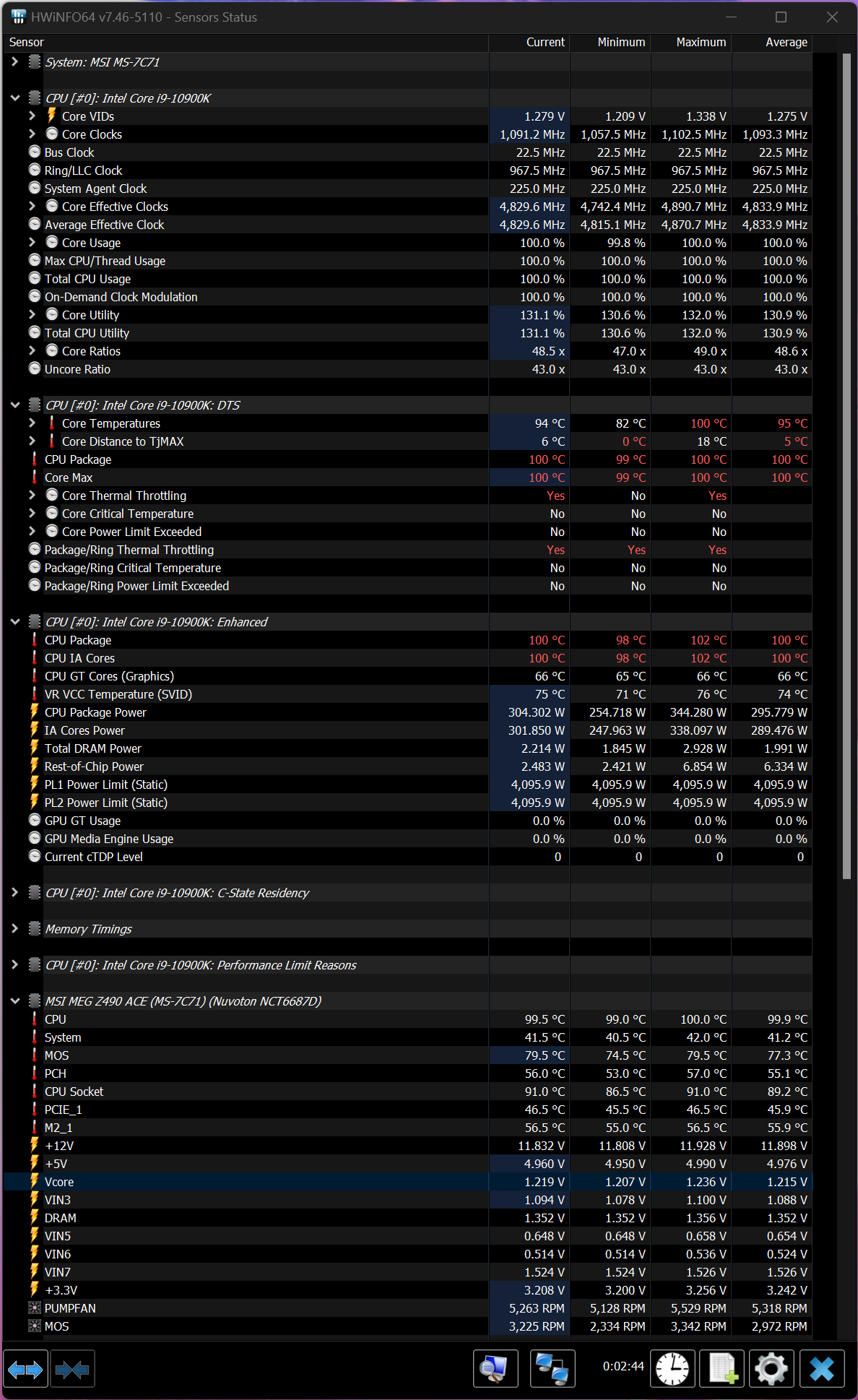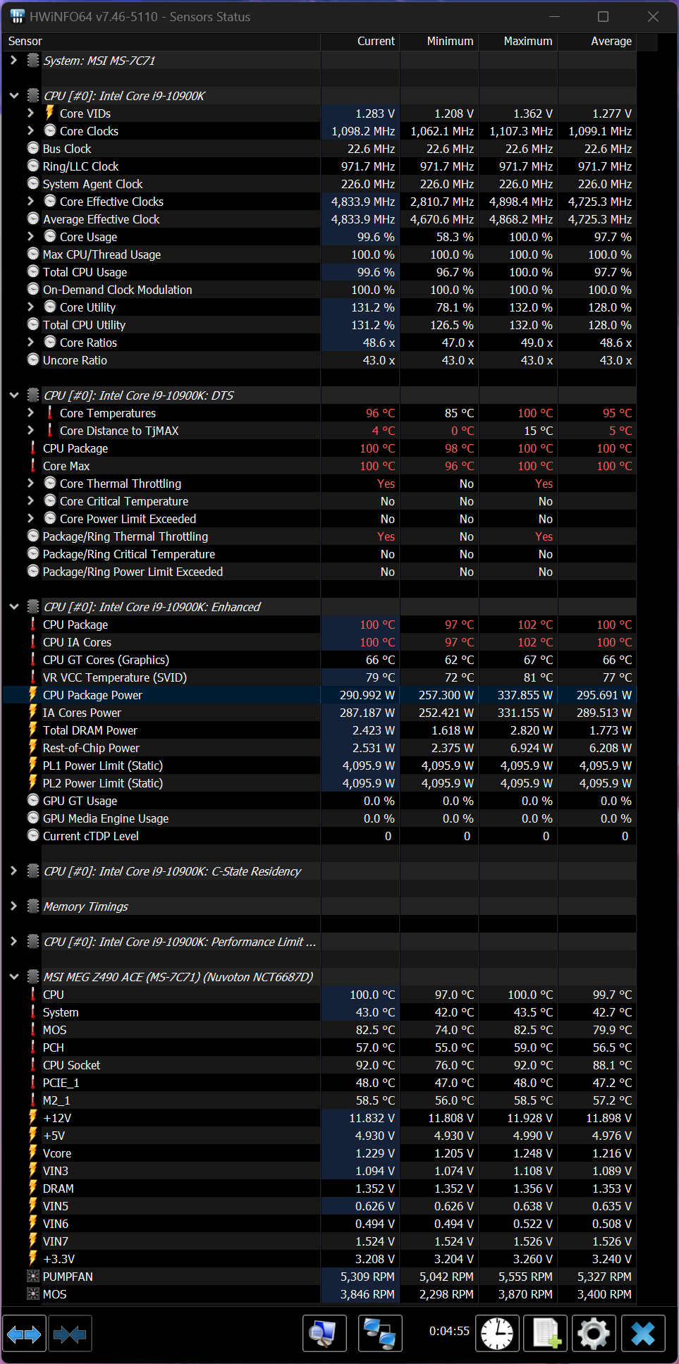 Nachdem das Undervolten nicht so richtig funktioniert hat, wollte ich mal probieren die 5.1 GHz einzustellen, die mit dem "Game Boost" OC button im BIOS aktivieren kann. Auch hier freezed das System in Prime95. Ich habe diesen OC auch manuell im BIOS eingestellt (Quelle des Vorgehens MSI Anleitung). Auch bei 5.0 GHz freezt das System.