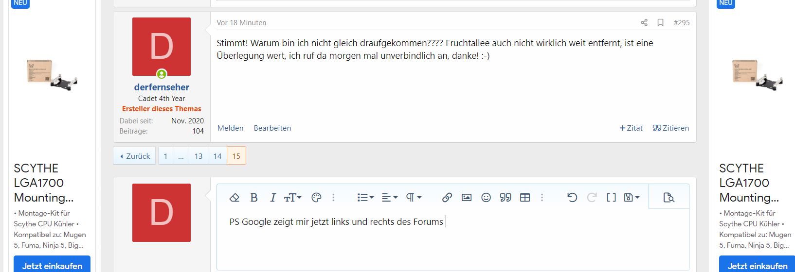 PS Google zeigt mir jetzt links und rechts des Forums das Mounting Kit zum Kaufen an. Unglaublich, dass MF und Caseking es nicht haben...aber du sagtest ja bereits, warum...Zeche Zeche Belohnung...