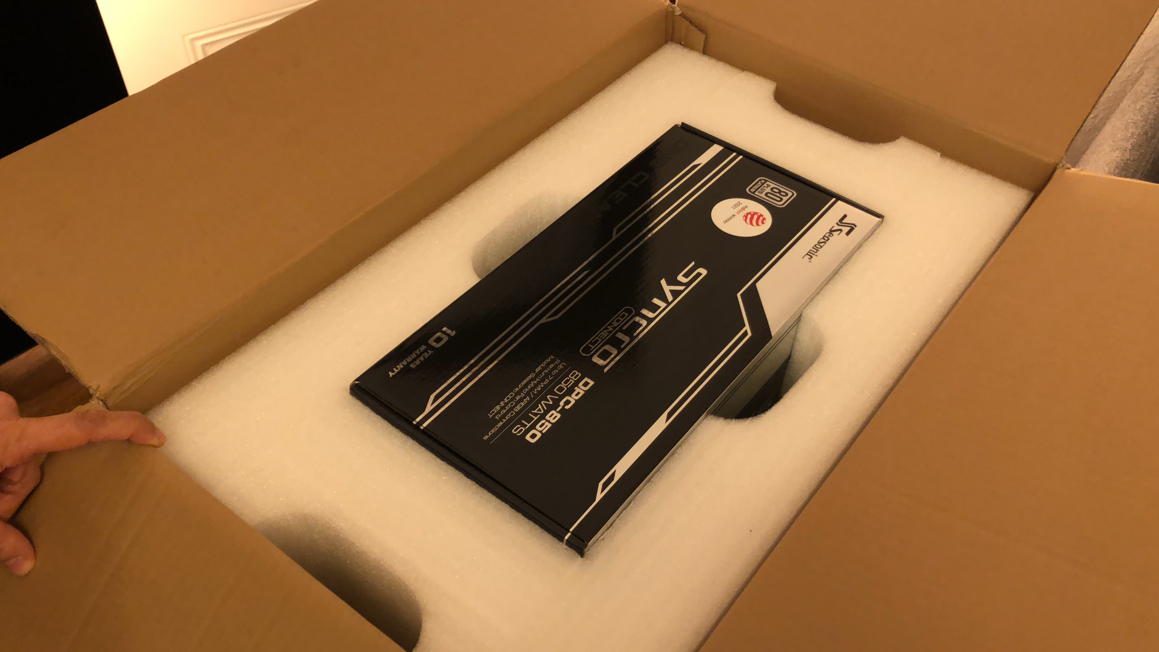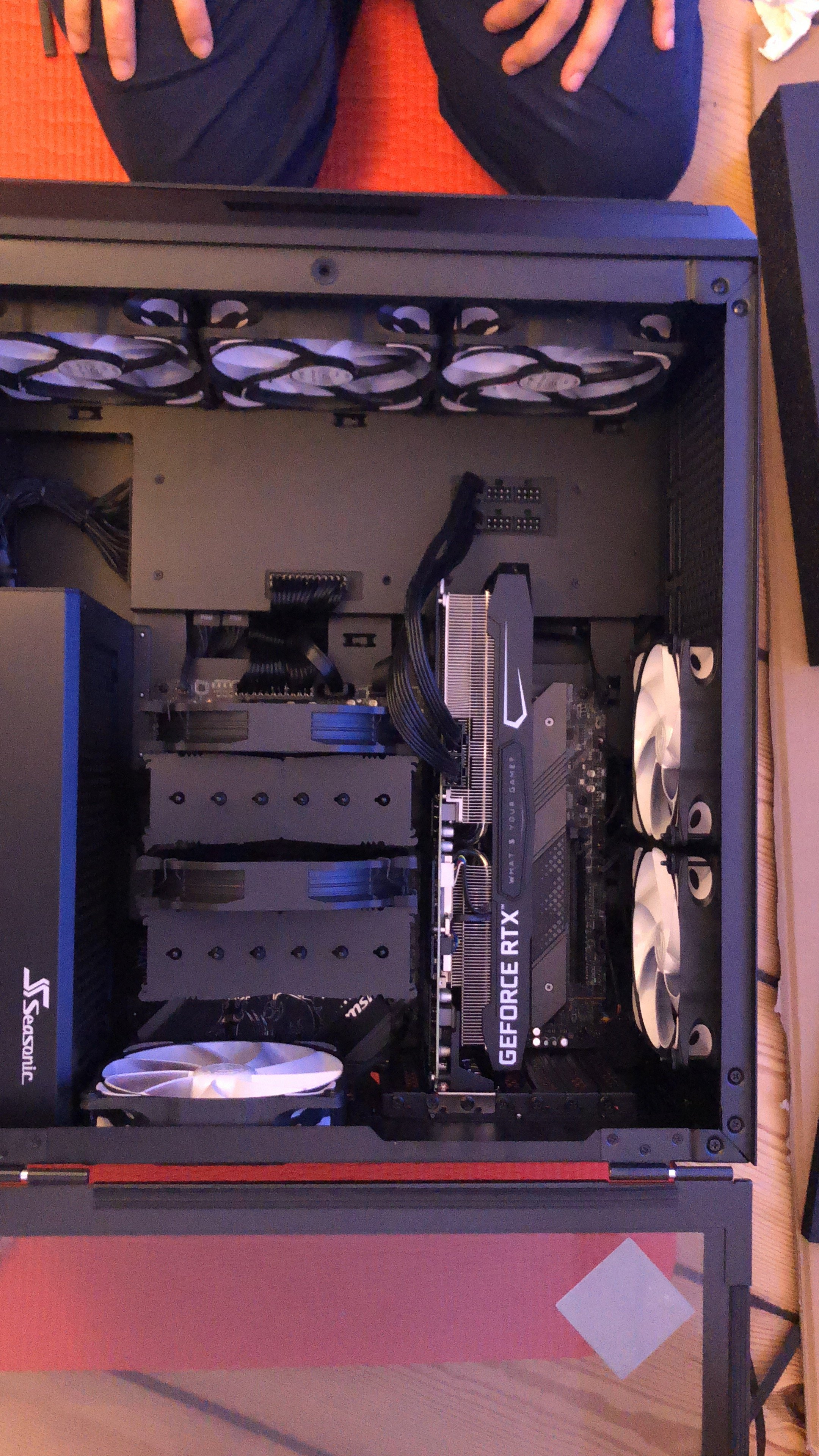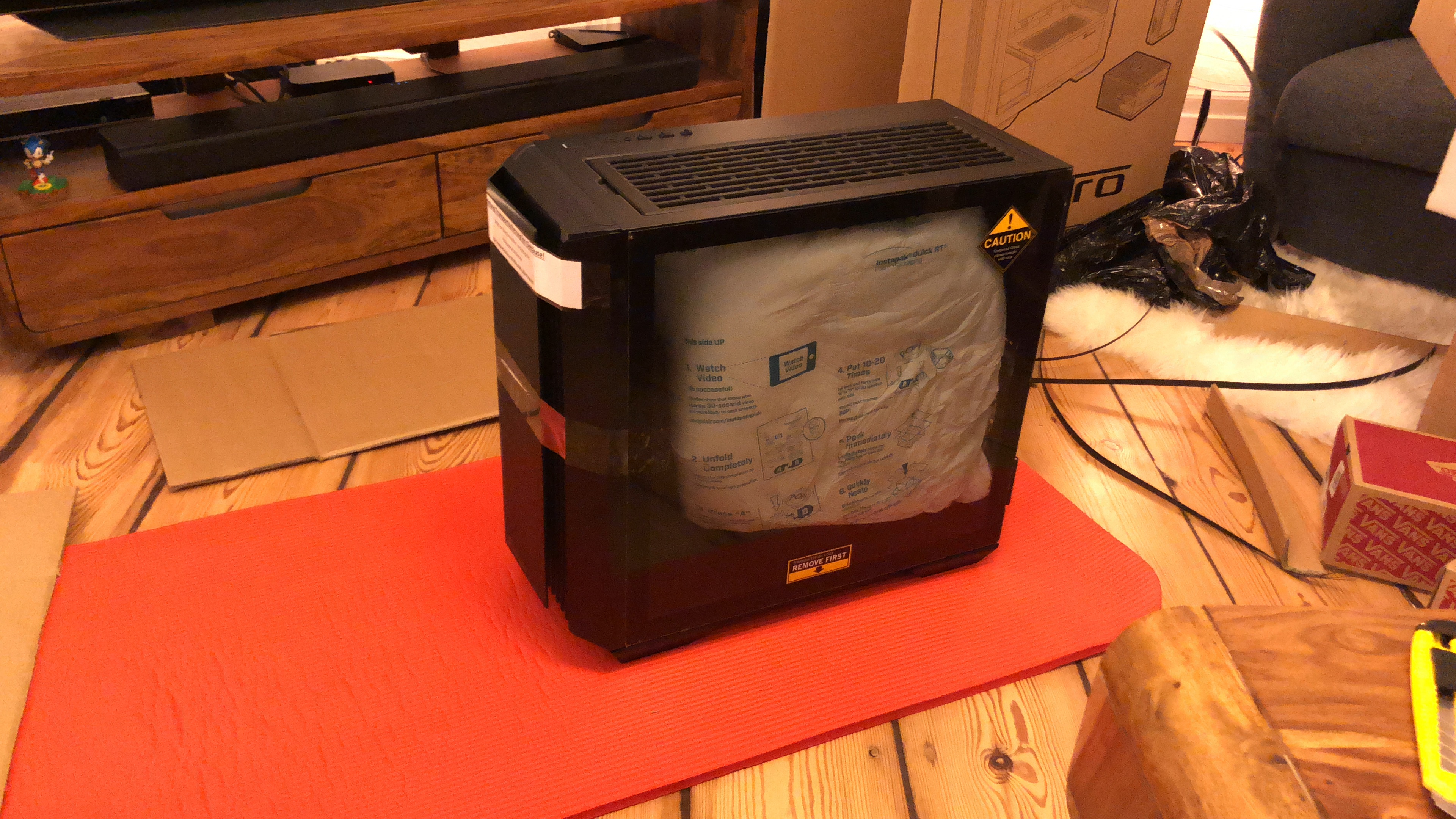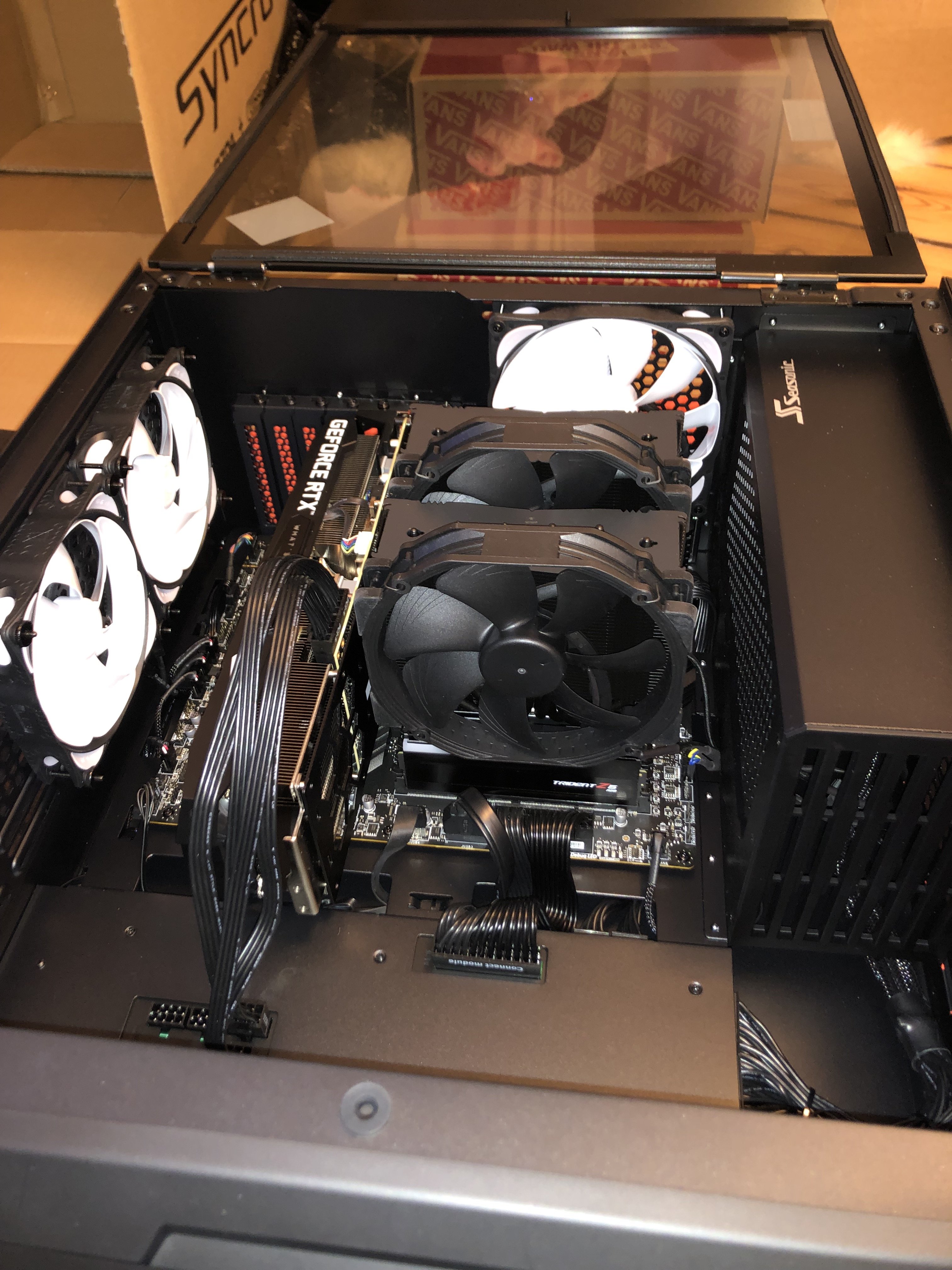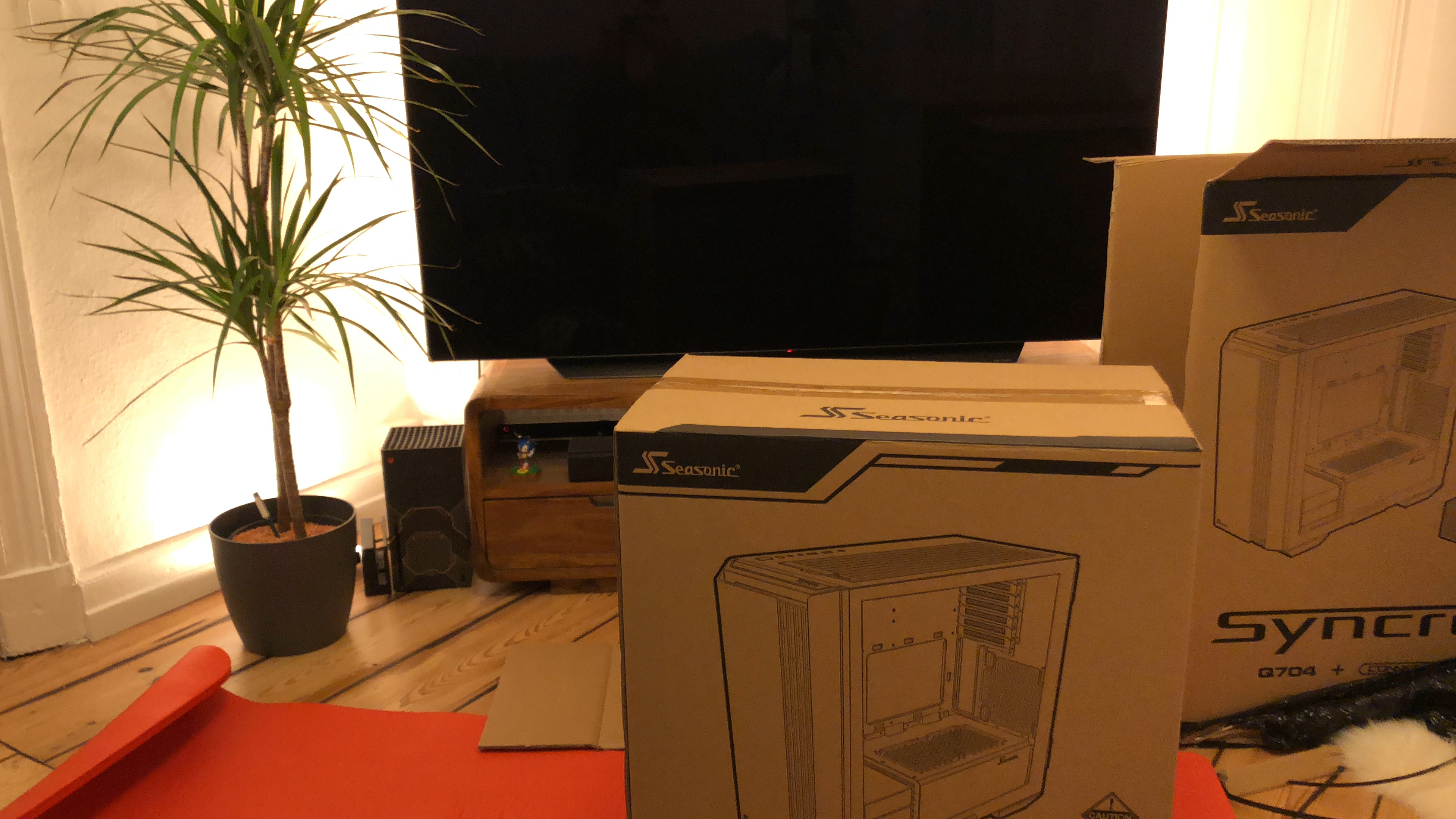 Paket jetzt ausgepackt...mamma mia, soviel Verpackungsmaterial...aber ich muss zugeben, wirkt professionell und auch der PC...die Verkabelung wirkt echt aufgeräumt! Nun muss er nur noch laufen, aber 30 Minuten Ruhezeit wird vor der Erstinbetriebnahme empfohlen/befohlen, also warte ich. Hab mich gerad gefragt, ob ich nicht jetzt schon die Grafikkarte einbauen sollte, aber wahrscheinlich erstmal System testen, dann Windows, dann Karte, ist besser so-oder? Es folgen ein paar Pics...falls das Forum meint, zu viel oder zu uninteressant, dann sorry und einfach löschen.