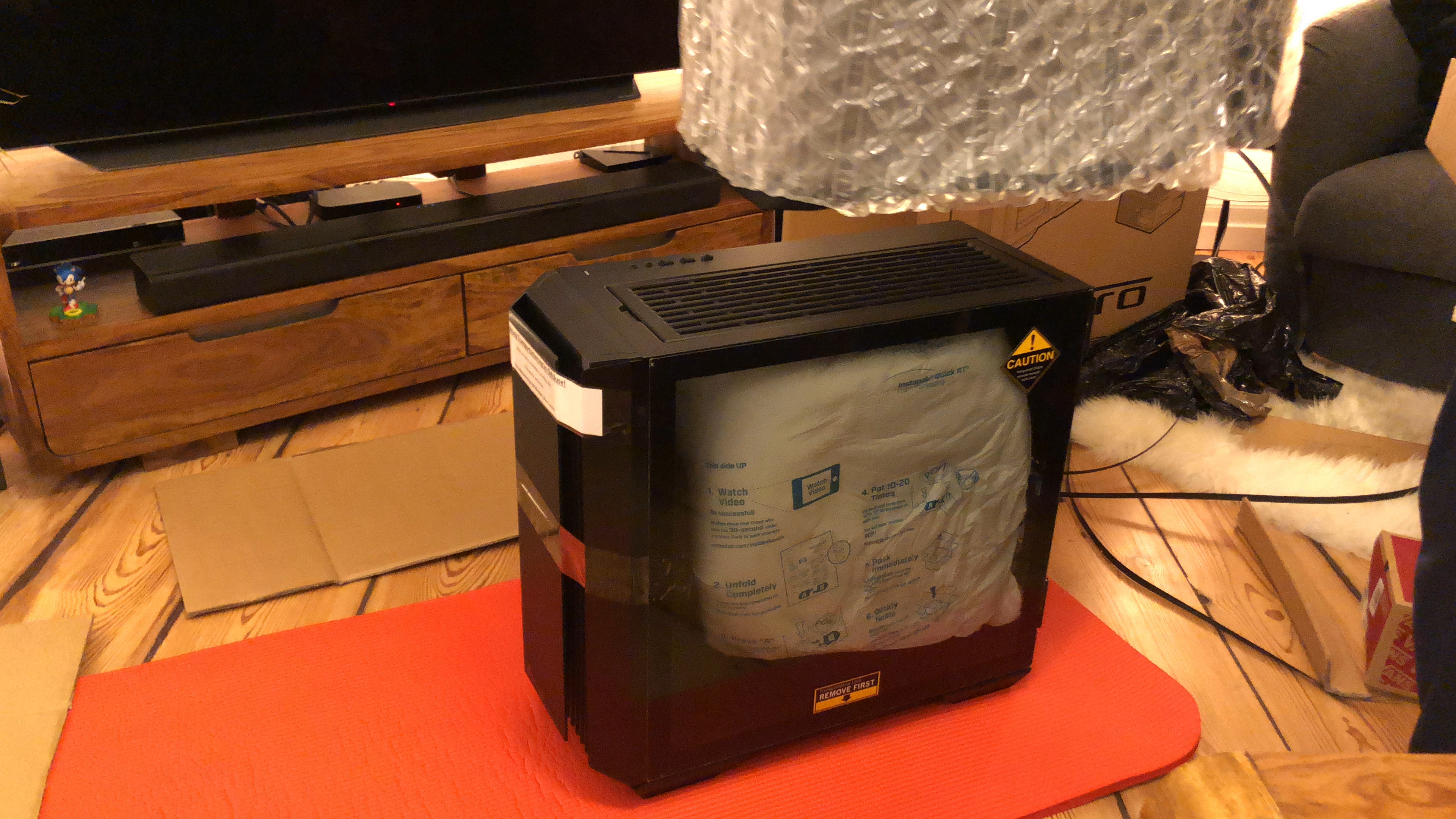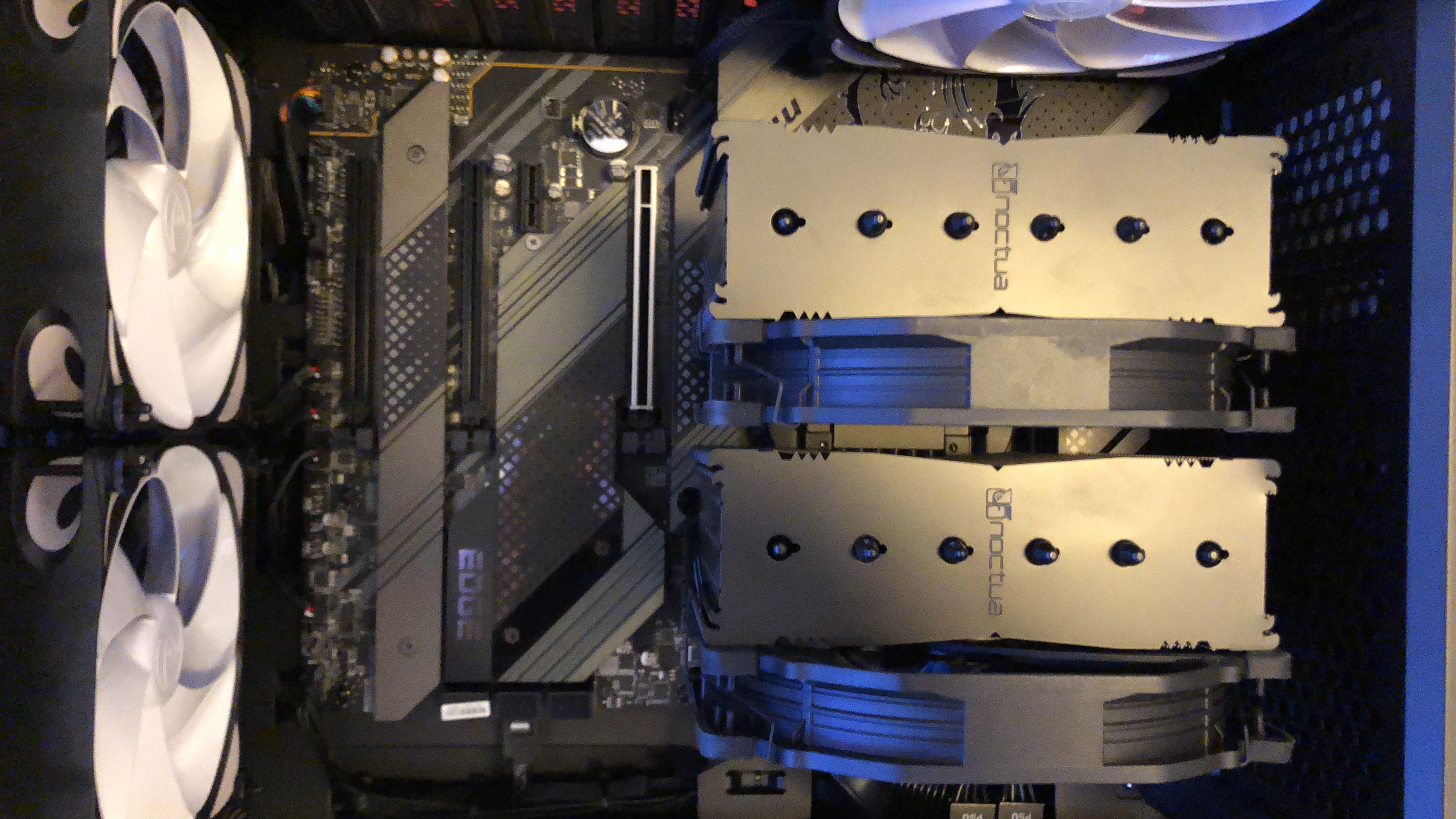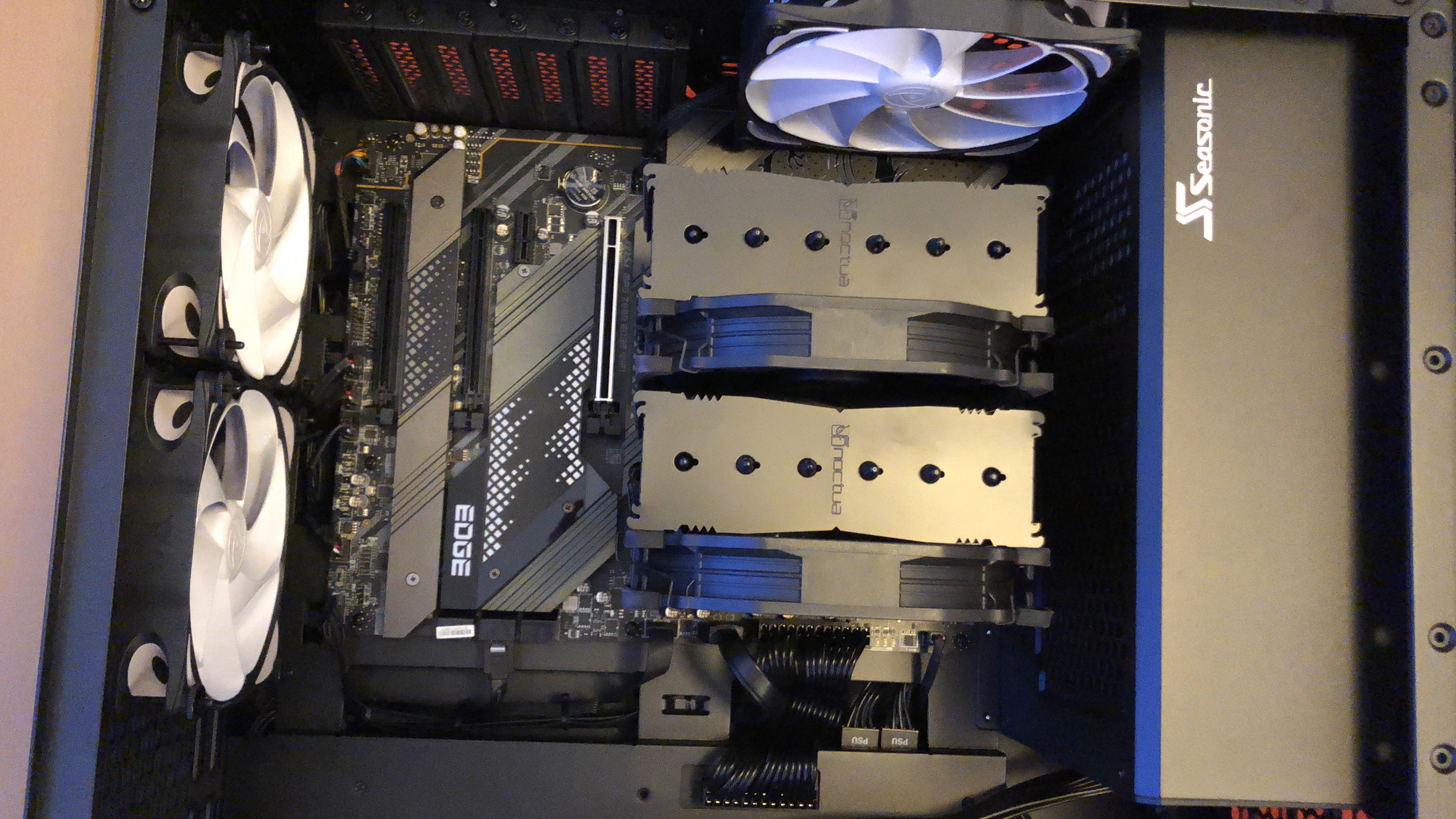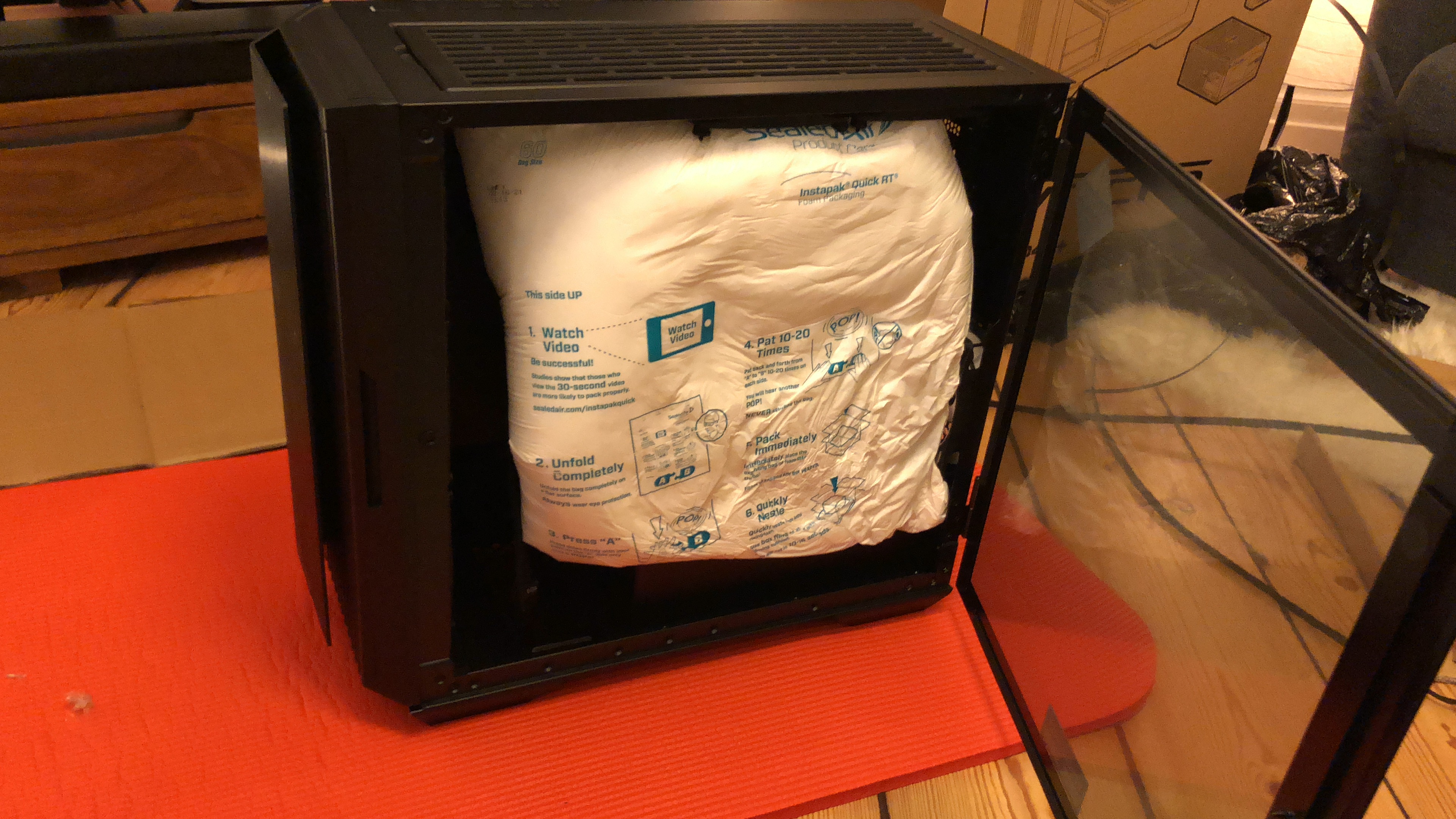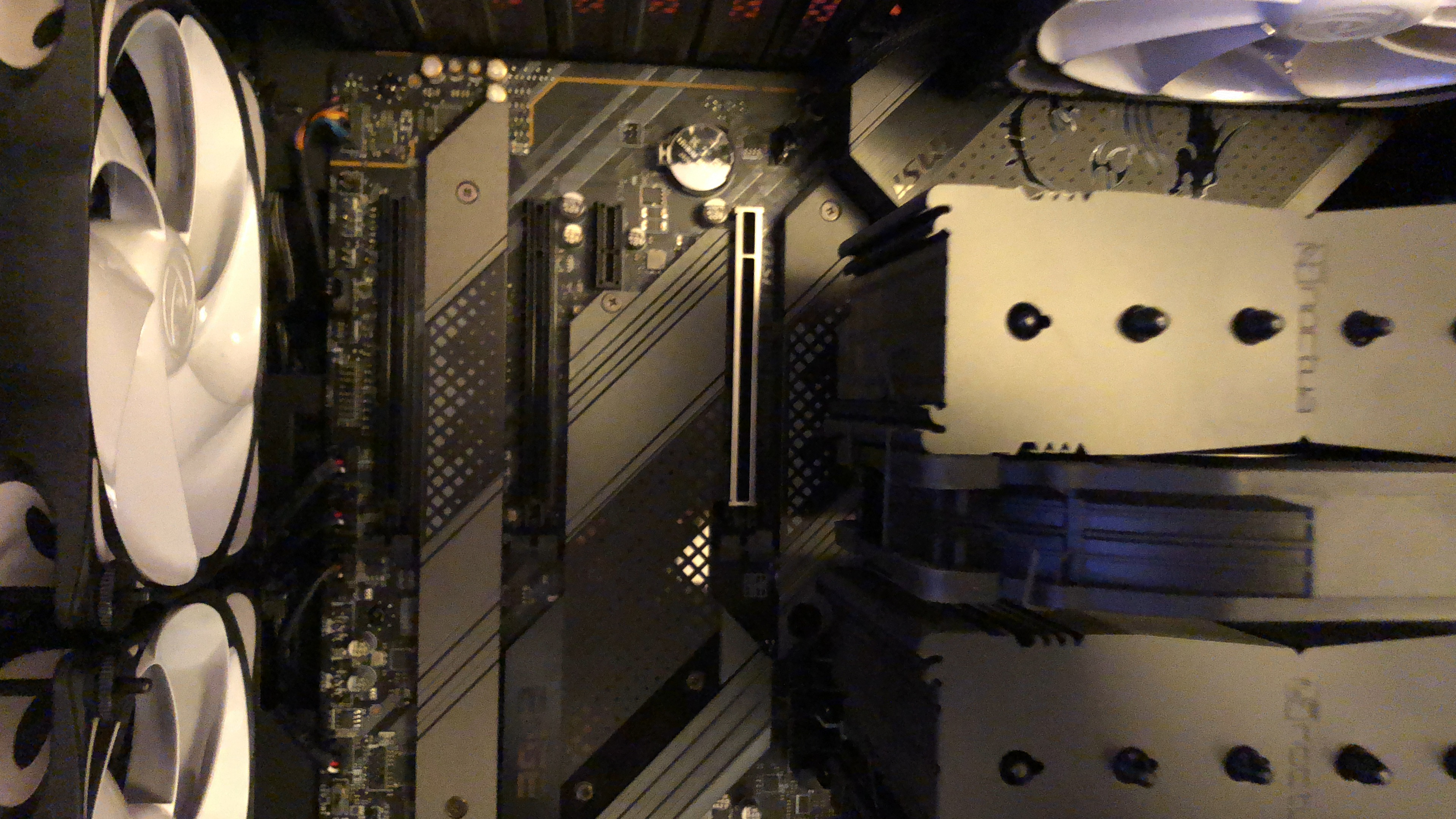 Paket jetzt ausgepackt...mamma mia, soviel Verpackungsmaterial...aber ich muss zugeben, wirkt professionell und auch der PC...die Verkabelung wirkt echt aufgeräumt! Nun muss er nur noch laufen, aber 30 Minuten Ruhezeit wird vor der Erstinbetriebnahme empfohlen/befohlen, also warte ich. Hab mich gerad gefragt, ob ich nicht jetzt schon die Grafikkarte einbauen sollte, aber wahrscheinlich erstmal System testen, dann Windows, dann Karte, ist besser so-oder? Es folgen ein paar Pics...falls das Forum meint, zu viel oder zu uninteressant, dann sorry und einfach löschen.