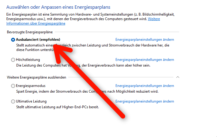 Windows Energiesparplan -> Ausbalanciert