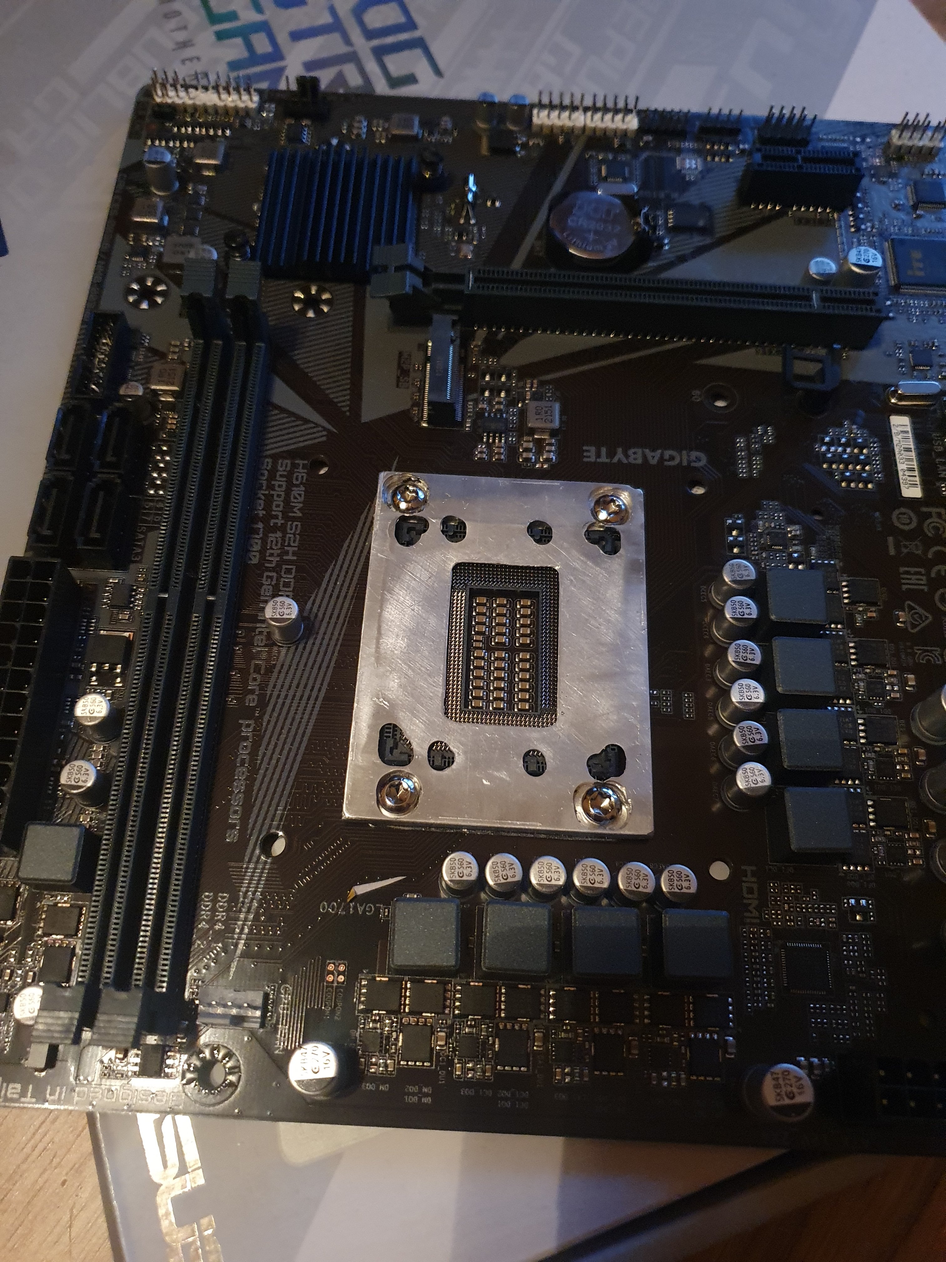 Die CPU muss tiefer in den Sockel als der Rand des Sockels daher hat der Anpressdruck meines Frames nicht ausgereicht, hab mit nur leichten Anpressdruck Kühler getestet um Pressdruck vom Frame zu überprüfen.