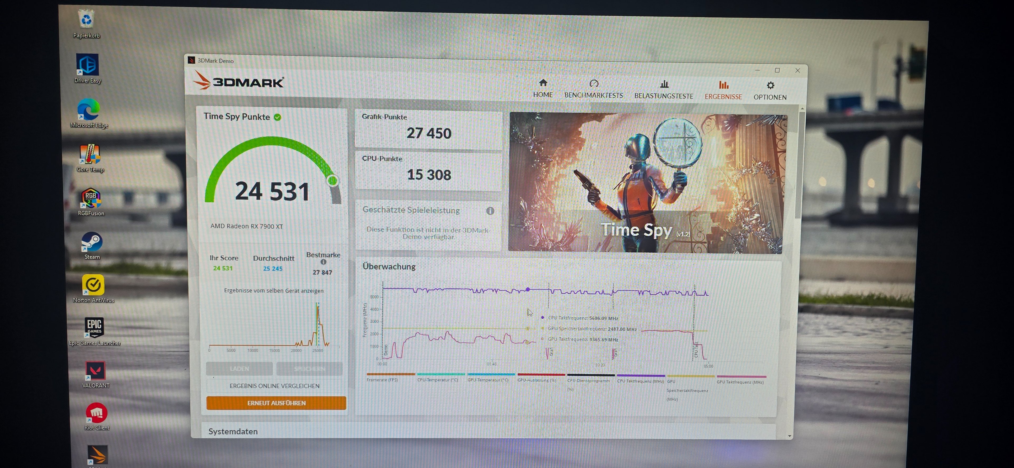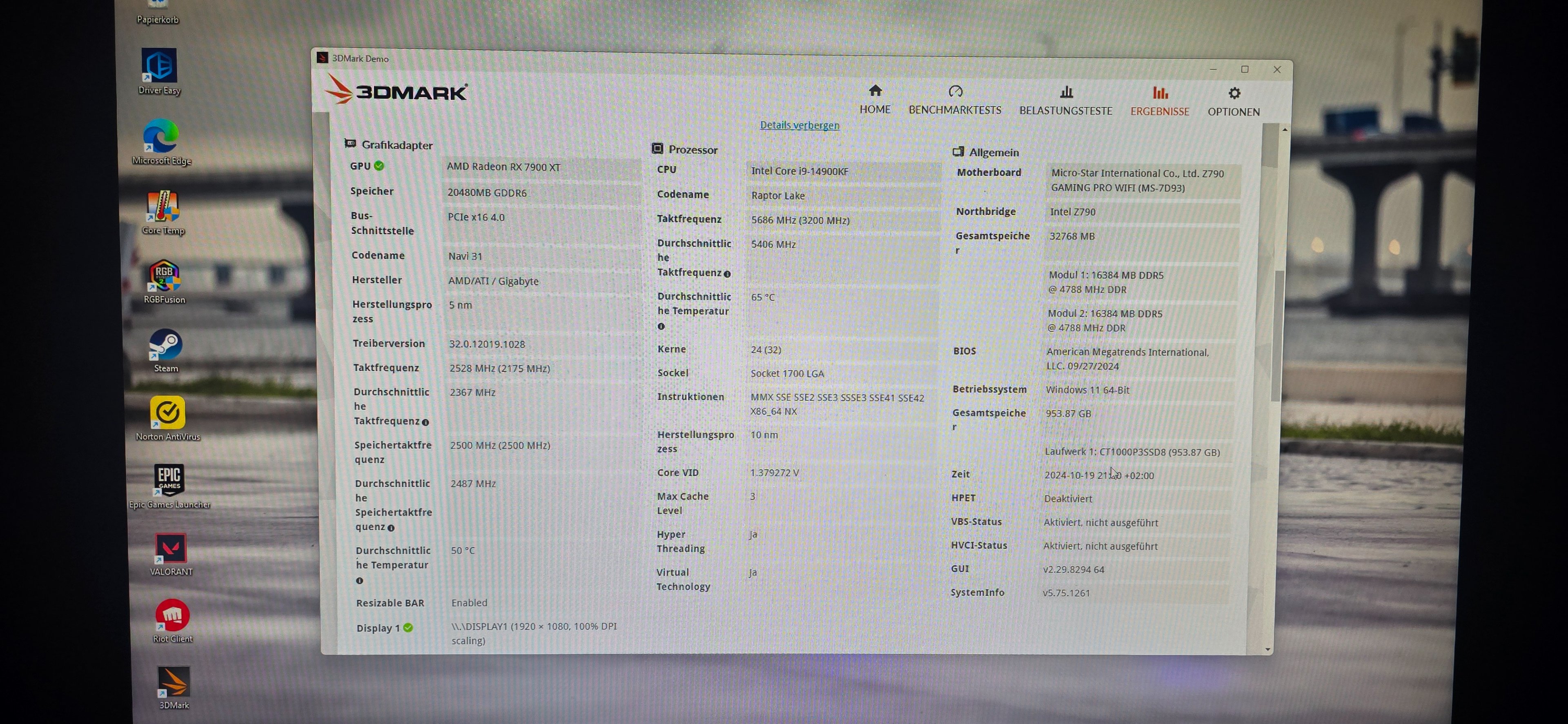 Das 2. Problem ist,dass ich den timespy gemacht habe jedoch die CPU nur 15000 Punkte erreicht.eigentlich sollte der i9 14900k doch 25000 Punkte oder so schaffen .