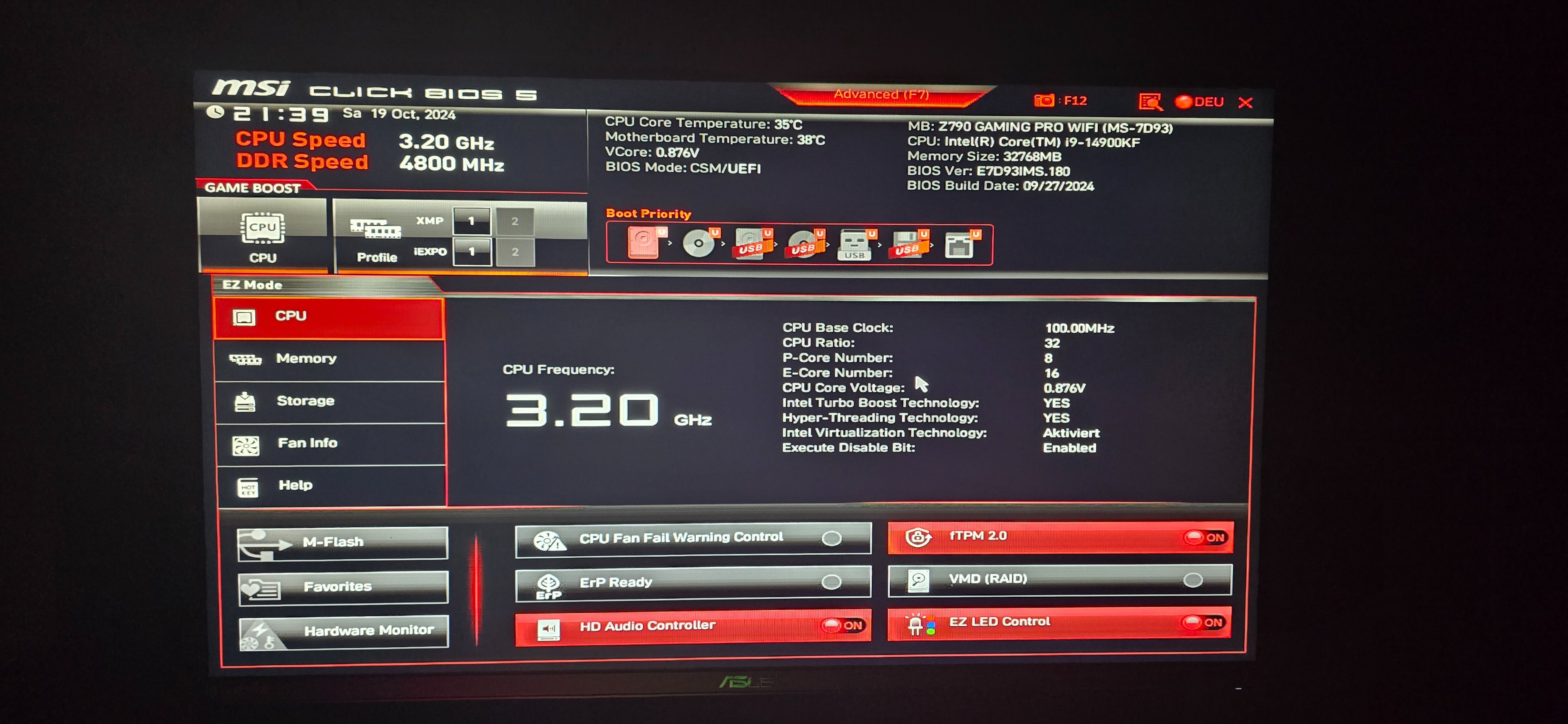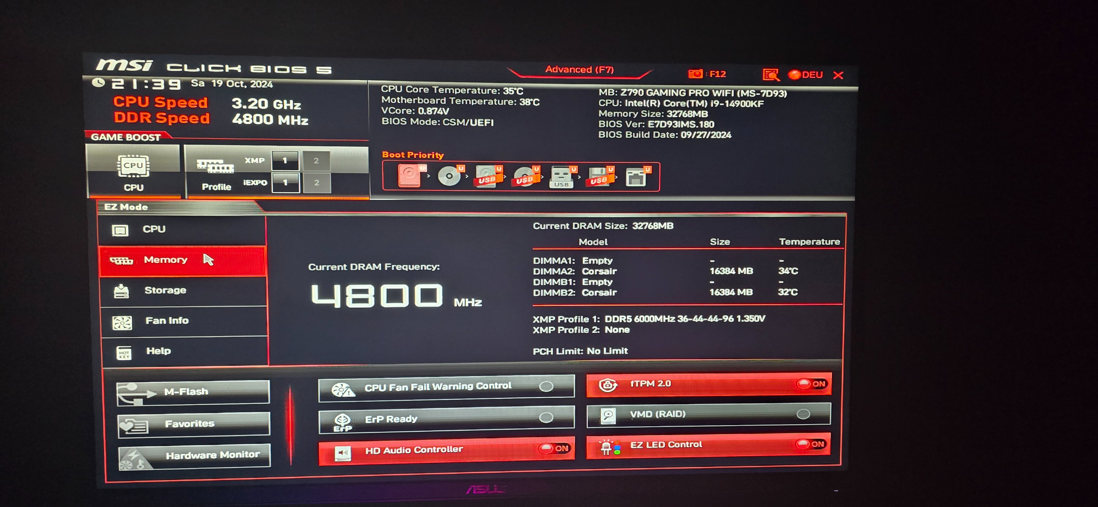 Zum einen habe ich das Problem, dass ich wenn ich xmp aktiviere der PC nicht bootet. Ich komme nur wieder ins BIOS und dort steht failure. Dann gehen die Einstellungen wieder auf Anfang und dann geht es wieder. Der ram läuft also nur auf 4800mhz.