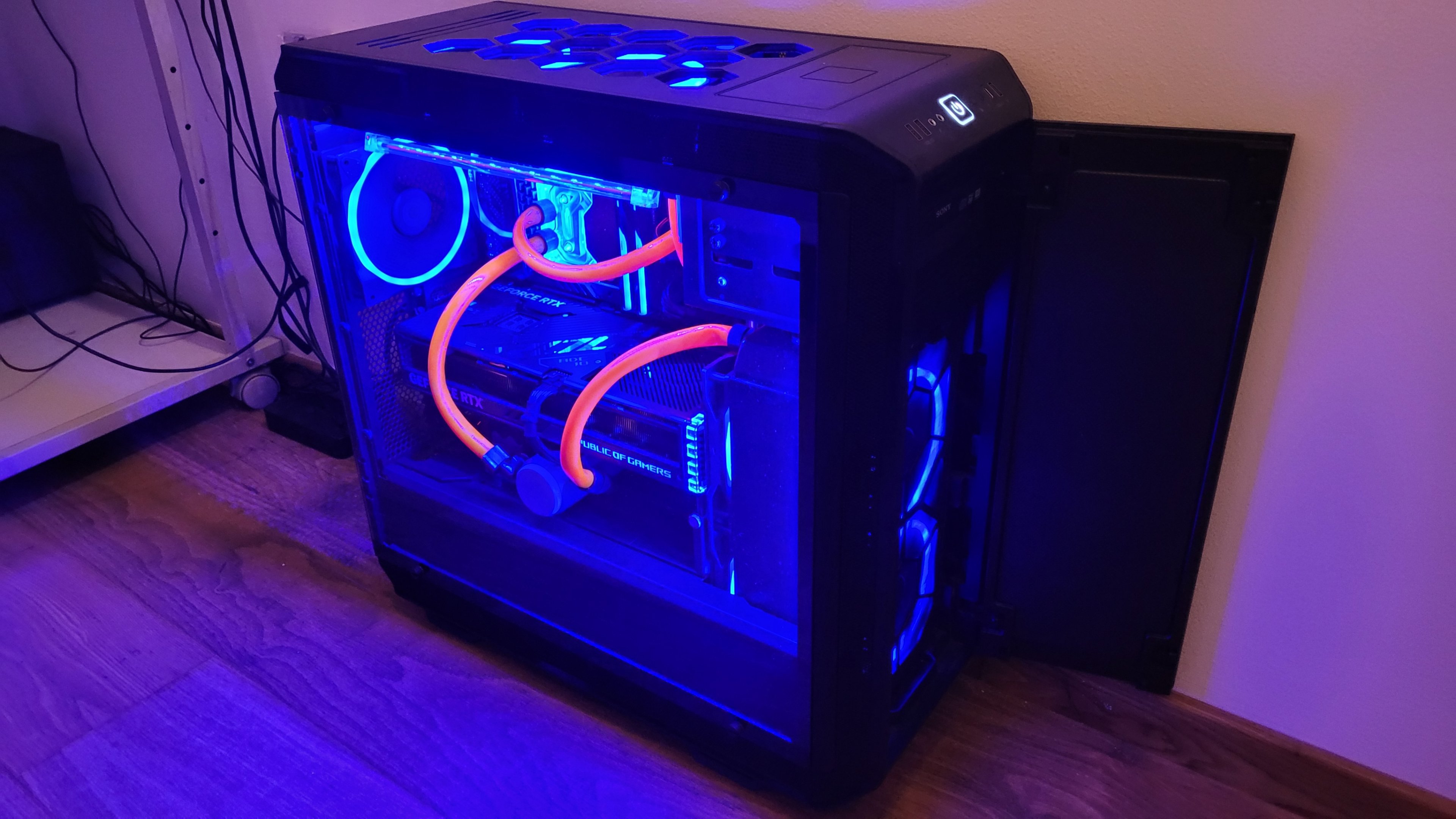 Bevor ich hier mein ganzes Setup aufzähle. Ich verwende 2 Radiatoren von 280mm und und jeweils 30mm dicke und 85mm von Alphacool. Wasserpumpe Aquastream Ultimate mit gutem Durchfluss trotz hässlicher Knicks von 130 l/h bei moderaten Umdrehungen von 3'300 U/m.