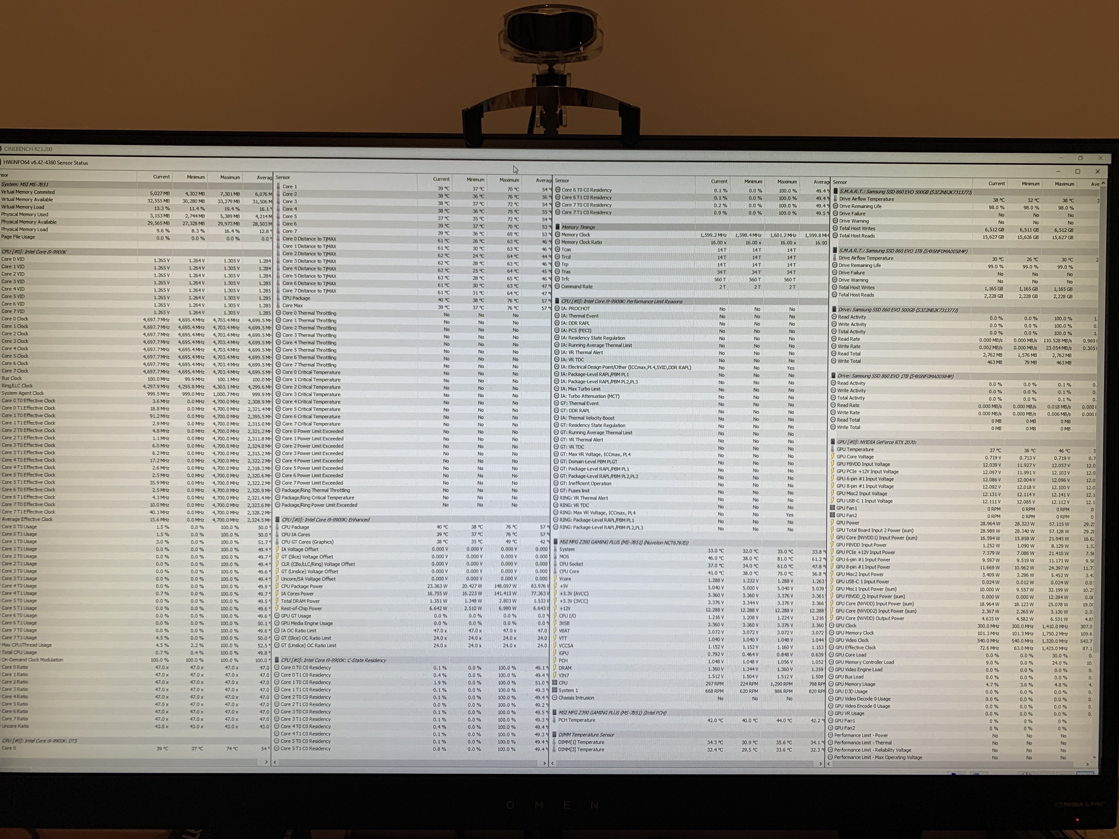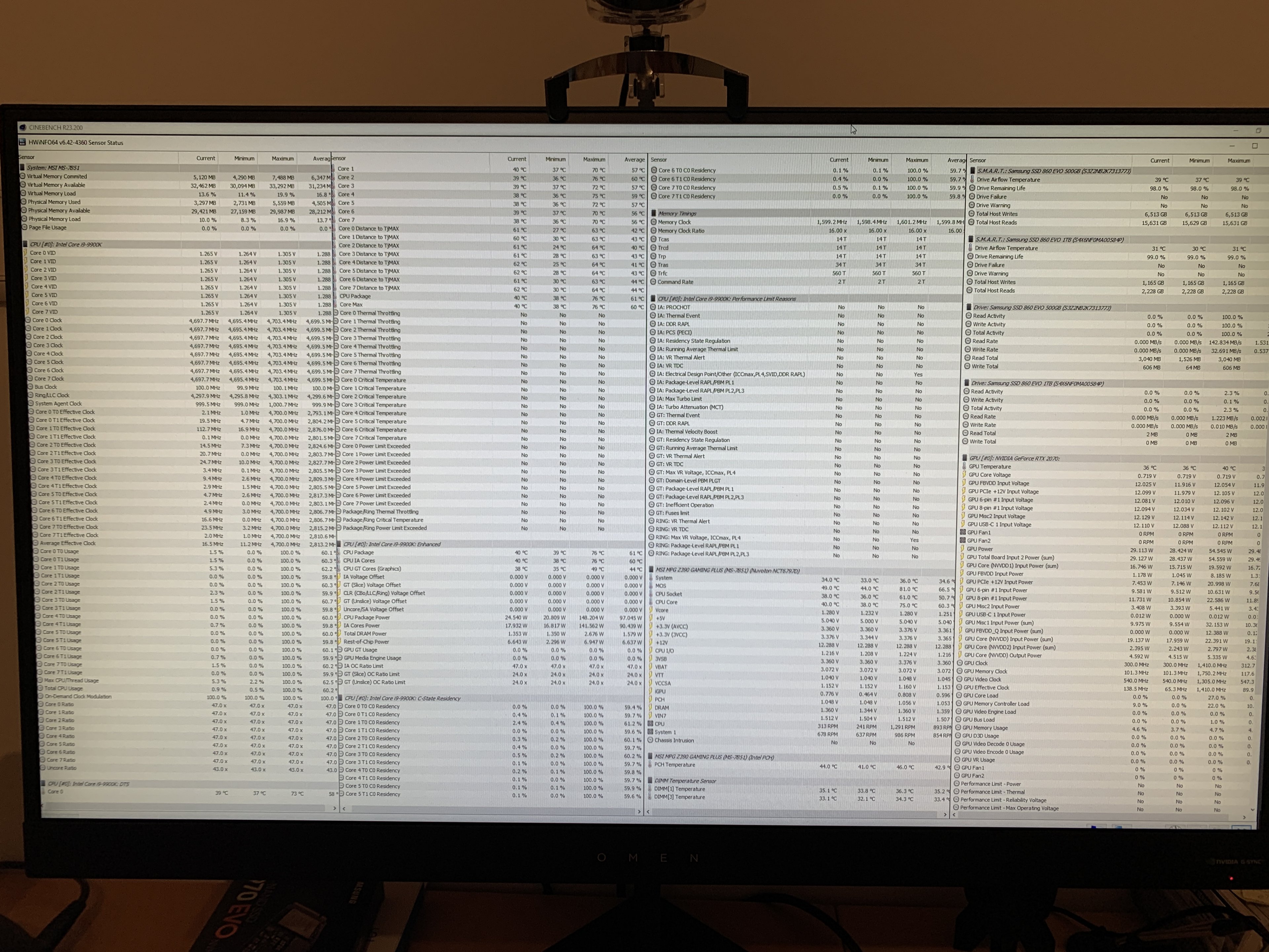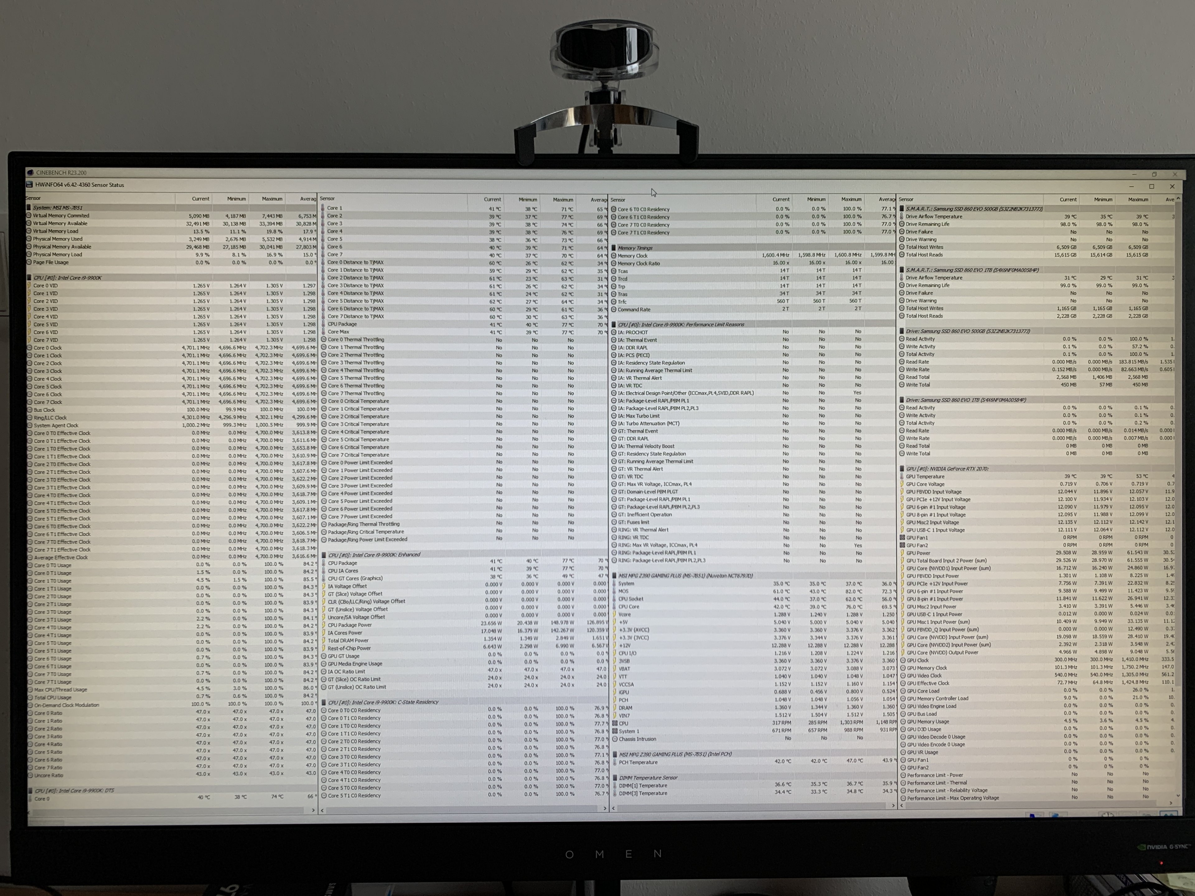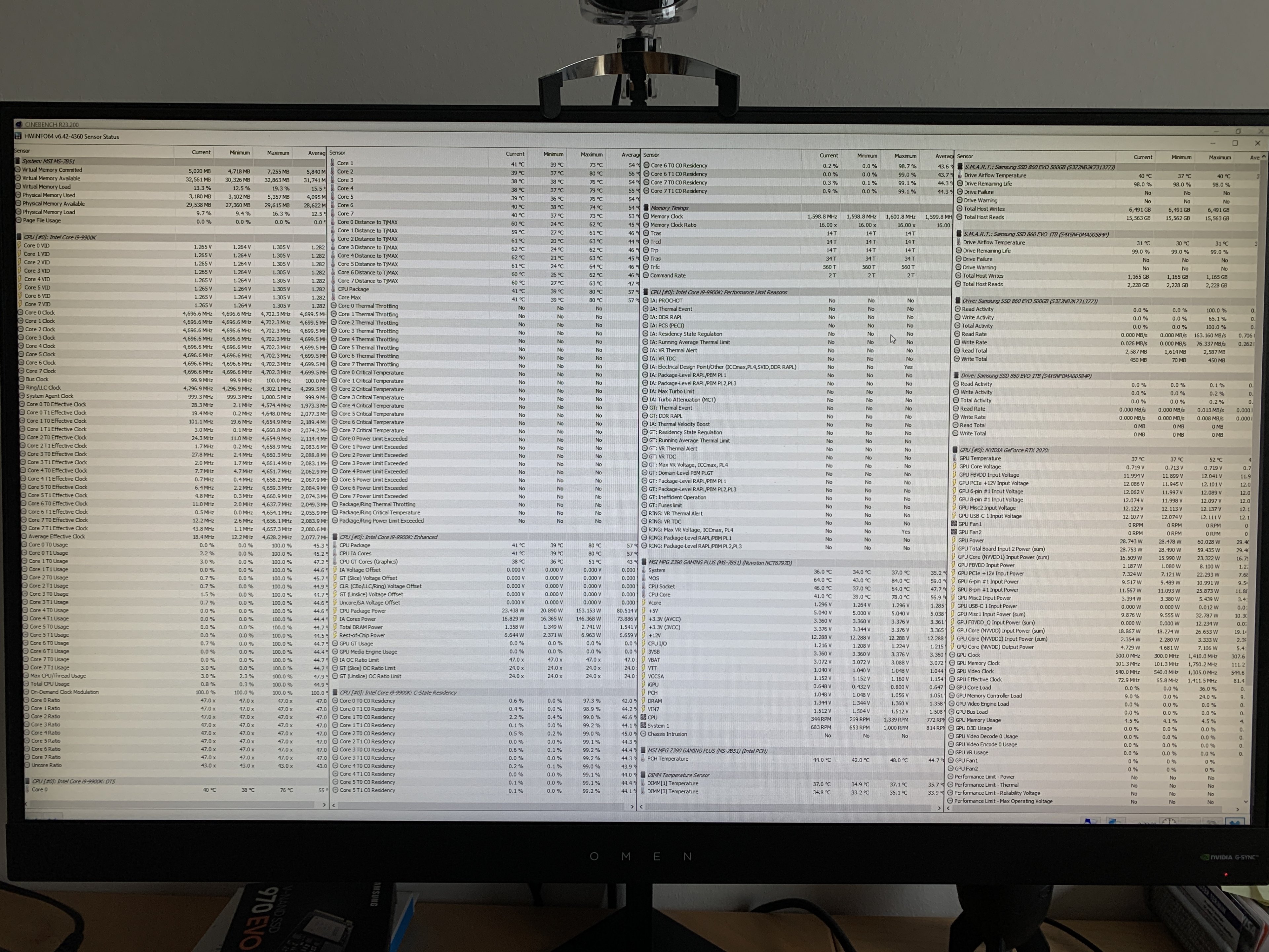 Mit CinebenchR23 (auf Standard ca. 9Min Muticore) lief alles stabil.