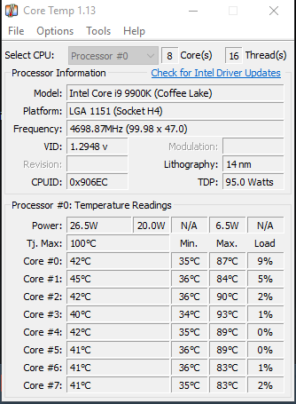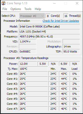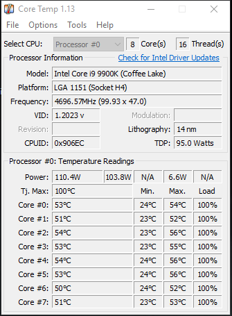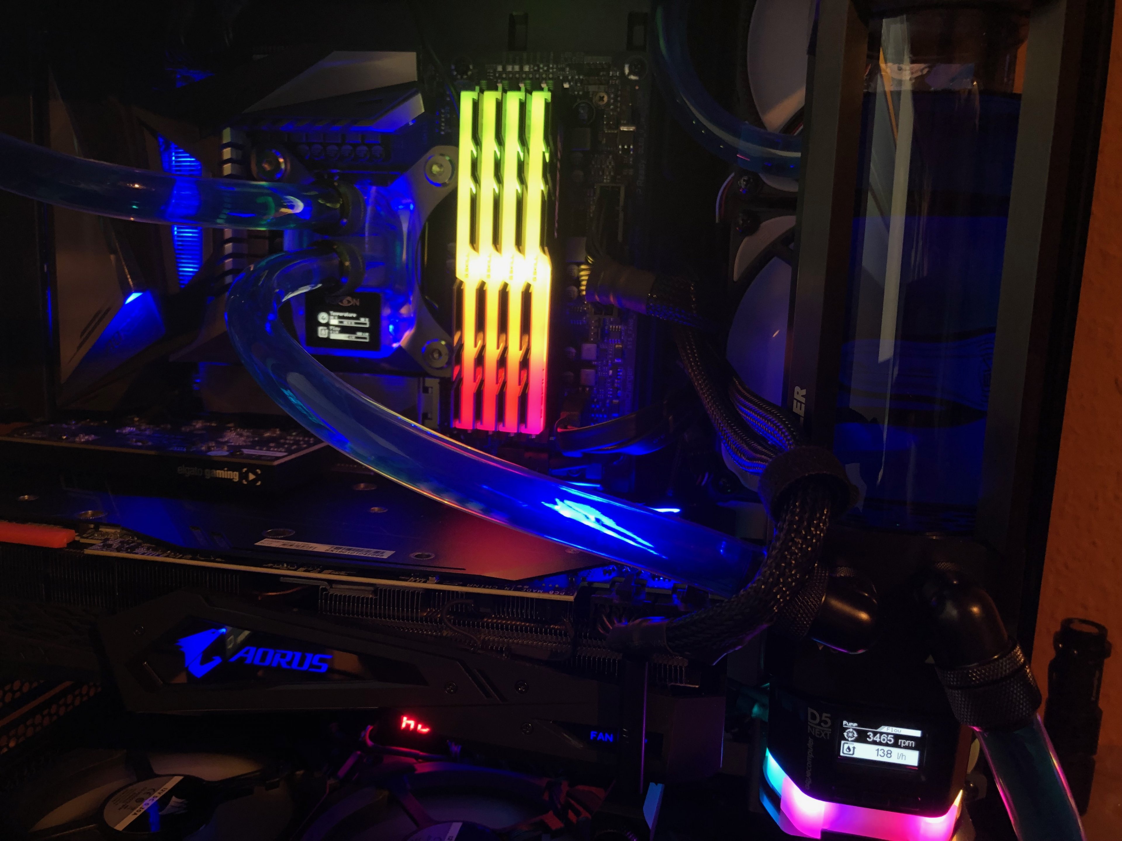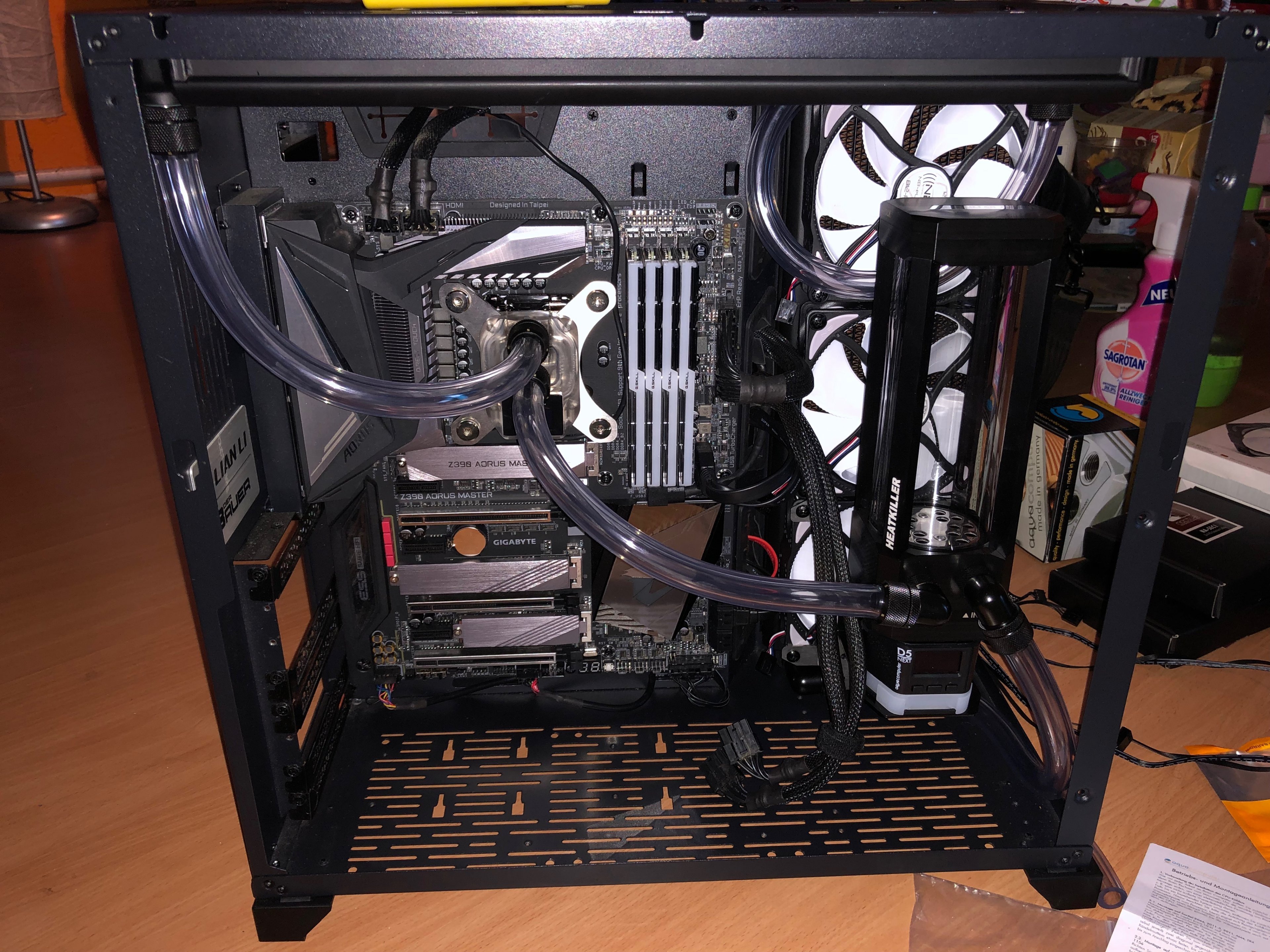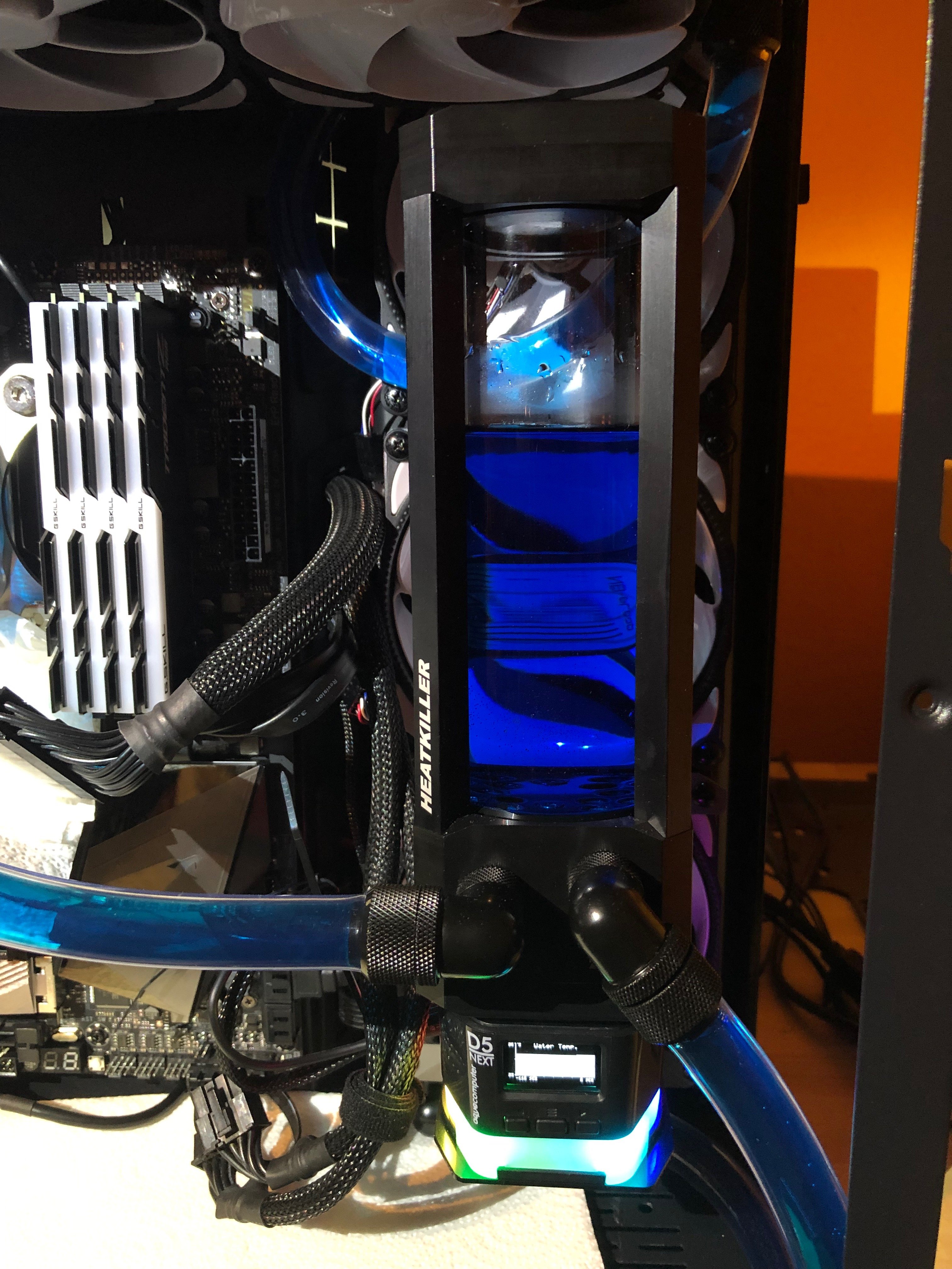 Das ganze sieht jetzt mit meinem 9900K etwas anders aus, da der ja mehr Hitze erzeugt. Aber die Wassertemperatur hat sich nicht groß geändert. Innerhalb von Spielen liege ich jetzt halt zwischen 50-60°C mit dem Prozessor und meine neuen 2080 erzeugt auch etwas mehr Wärme. Jetzt liege ich auch zwischen 43-46°C.