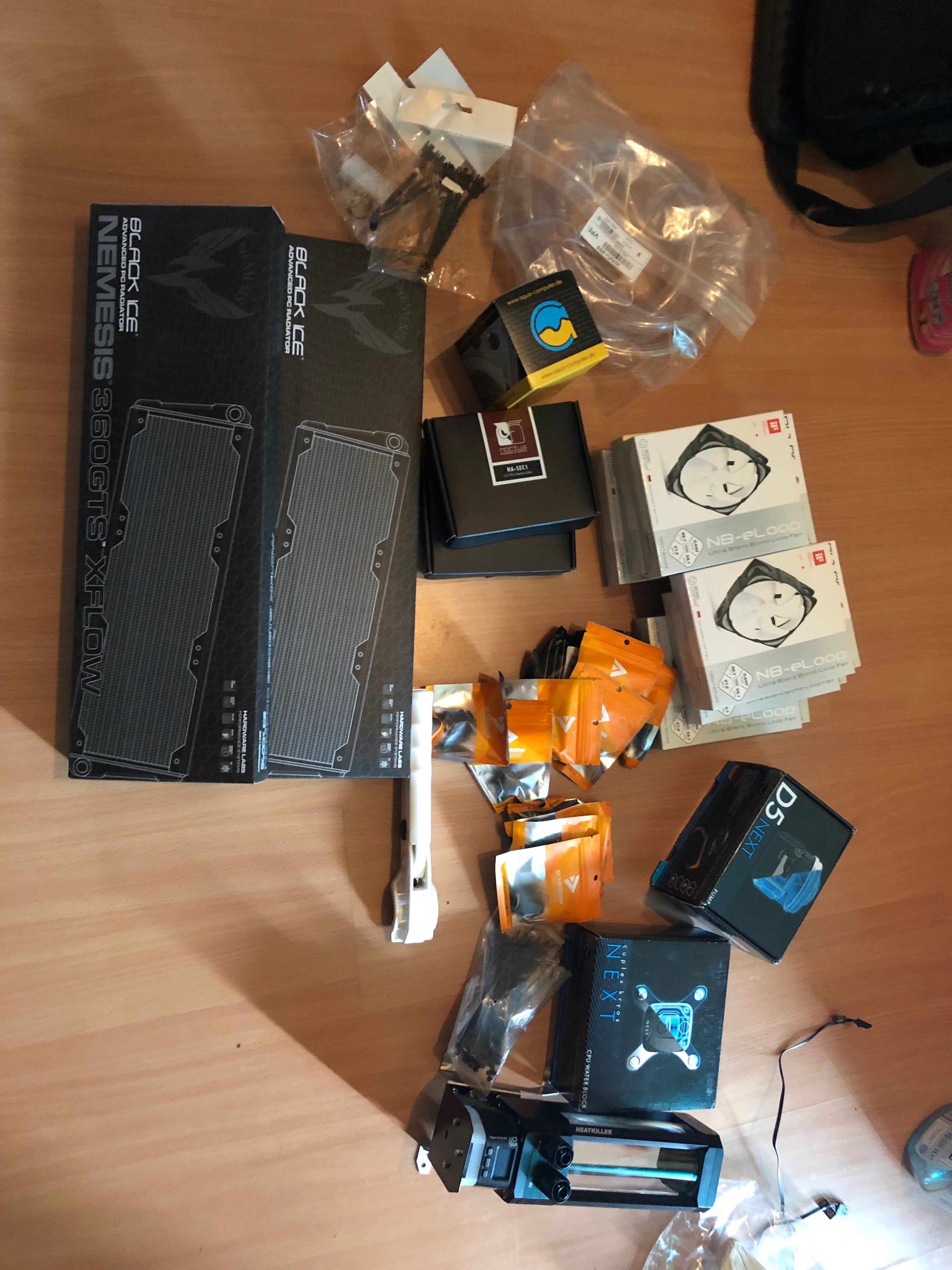 Soeben sind CPU Kühler und Pumpe angekommen, leider fehlt die Watercool Bestellung mit dem AGB und den Anschlüssen noch immer. Ich hoffe die kommt diese Woche noch an, sodass ich eventuell am Wochenende schon starten kann.