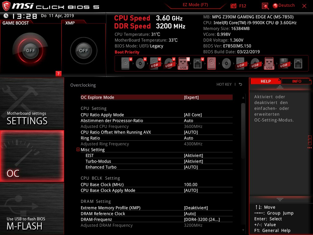 Mainboard: MSI MPG Z390M Gaming Edge AC