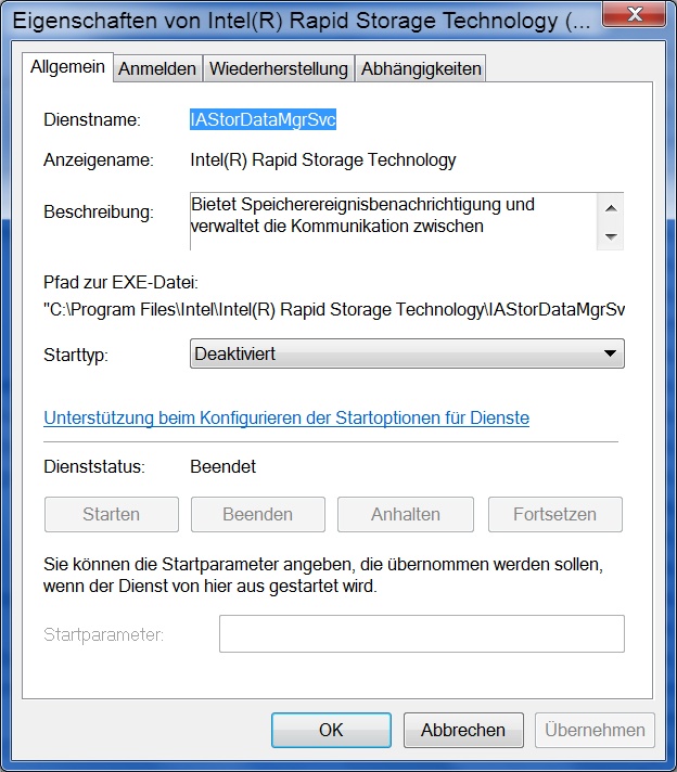Vor ein paar Tagen ist mir aufgefallen, dass die IAStorDataMgrSvc.exe, die automatisch mit dem System gestartet wird (Teil vom RST, nicht von der ToolBox) konstant ~50% CPU-Auslastung verursacht.