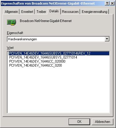 Geräte ID/Subsystem ID: 12AE-0003 [-> Vendor ID: 12AE (Alteon Networks Inc); -> Device ID: 0003 ????]