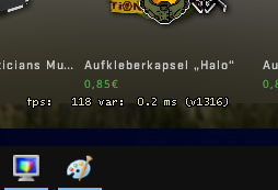 und gemerkt sobald ich in ein game alt-tabbe bekomme ich die meldung im bild 2 , bild 1 zeigt die gelbe schrift (die untere zeile mit 118var: 0.2ms ebenfalls nur ingame sollte eigentlich auch weiß sein