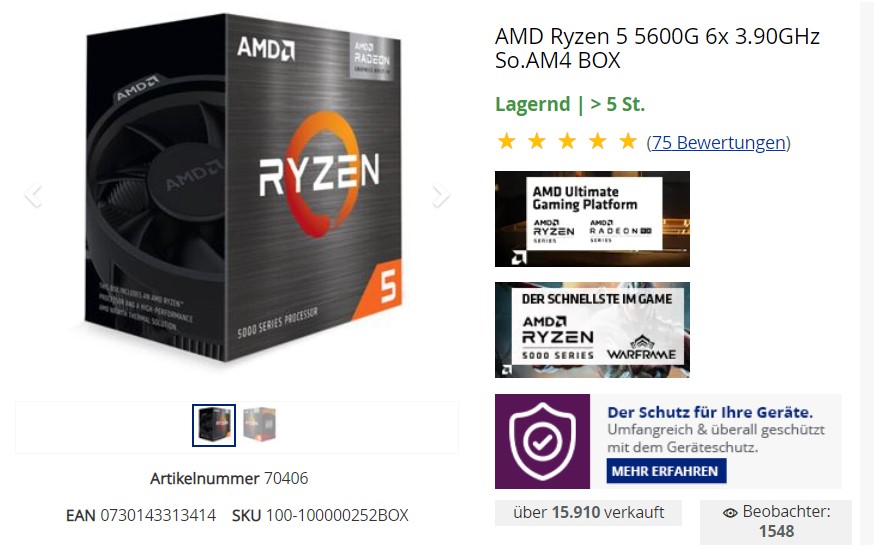 - Prozessor (CPU): AMD Ryzen 5 5600 G