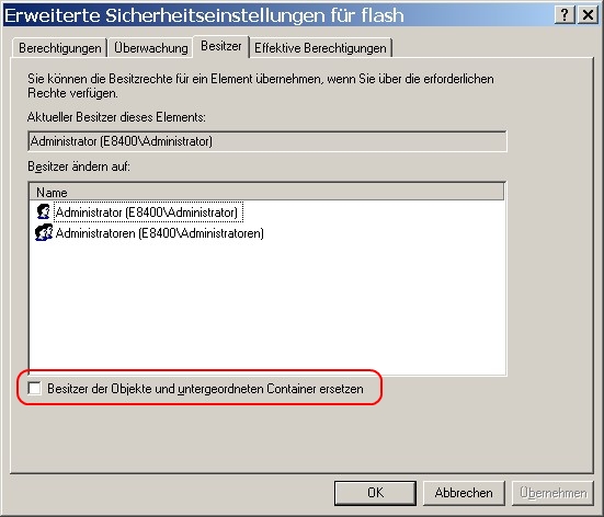ich hab vor kurz meinen PC komplett neu zusammen geschraubt, und auch neu Windows 7 drauf gemacht nur meine alten Daten habe ich übernommen. Nun habe ich das Problem das ich auf mache Datei/Ordner nur noch die Meldung "Zugriff verweigert" bekomme, egal was ist mache... ob mit verschiedene Programmen wie TuneUp Shredder oder mit dem Befehl "cacls" und die habe ich auch schon alles im abgesicherten Modus versucht und bekomme, selbst in der cmd Konsole die Meldung "Zugriff verweigert".