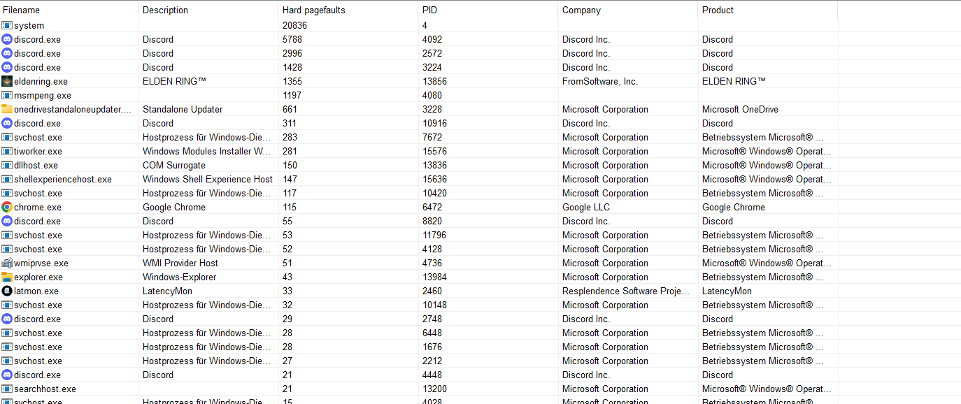 Es wird permanent in Mengen ausgelagert. Aber so, dass immer wieder was rausfliegt und die Anfragen ins Leere laufen. Daher die pagefaults.
