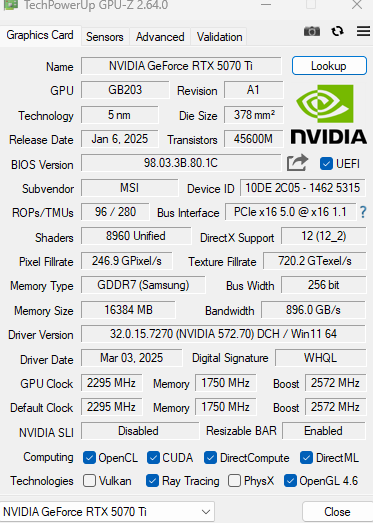 Bei der MSI 5070 ti habe ich zu diversen Timeouts, Blackscreens, bootet nicht immer vollständig ins Windows noch mehr Probleme.
