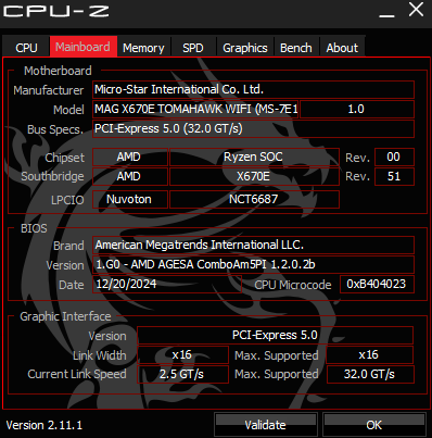 • Mainboard: MSI Tomahawk WIFI AMD X670E So.AM5 Dual Channel DDR5 ATX Retail