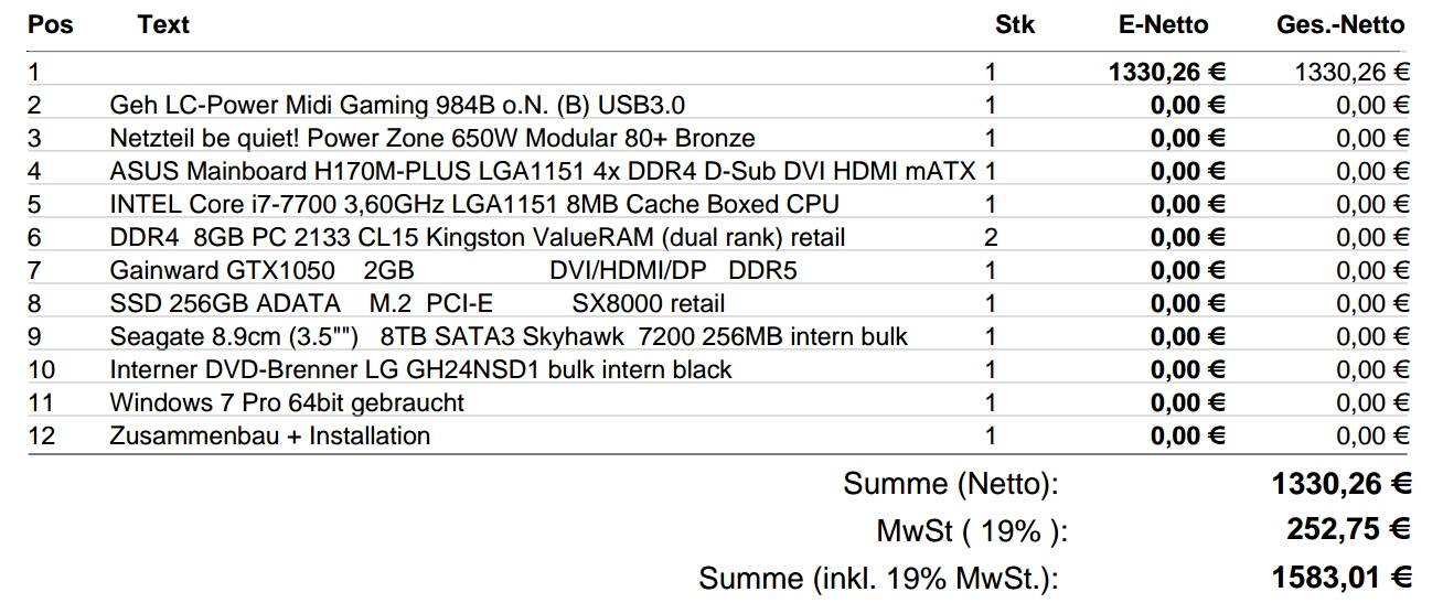 Meine Anforderungen an den neuen Rechner sind :