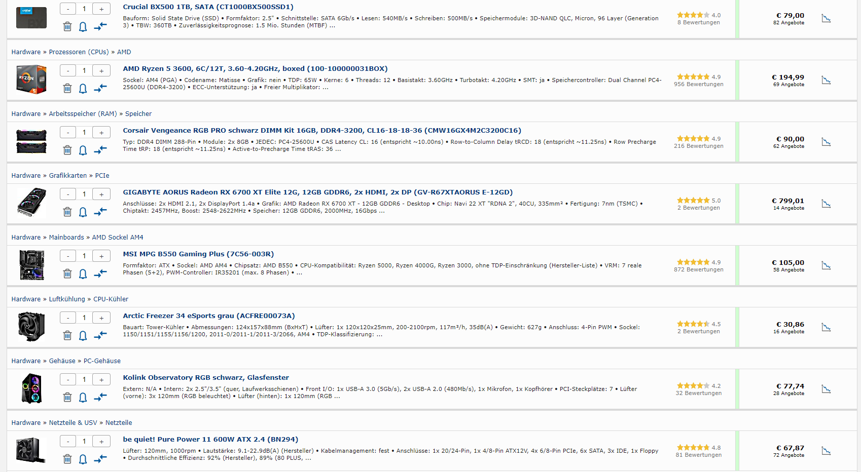 Meine derzeitige Config, die ich mir bis jetzt für einen neuen PC zusammengestellt habe: