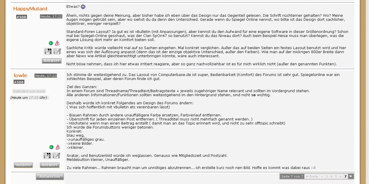 So, nachdem ich jetzt hier die anderen Beiträge gelesen habe, fällt mir auch auf, dass das eine sehr subjektive Betrachtung ist. Ich kann auch verstehen das viele das Forum gewöhnt sind, wie es ist, was für mich ein komplettes Redesign sowieso ausschließt, wäre ja auch Blödsinn. Um so besser finde ich franeklevys Vorschlag eine Individualisierung (lowle-vel Format) ;-) zu ermöglichen.