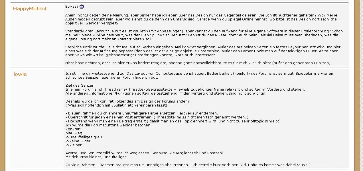 Wenn die aktuelle, starke Struktur durch die dicken Rahmen wegfällt, wird die Struktur der einzelnen Beiträge und deren Schriftbild betont.