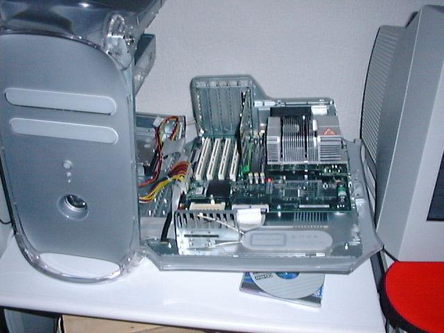 das Gehäuse rult..einen Knopf drücken, und das ganze seitenteil klappt runter..natürlich inkl Mainboard (wo ist auf dem ding die northbridge und so? sieht voellig leer aus..nix wie PC-mobo
