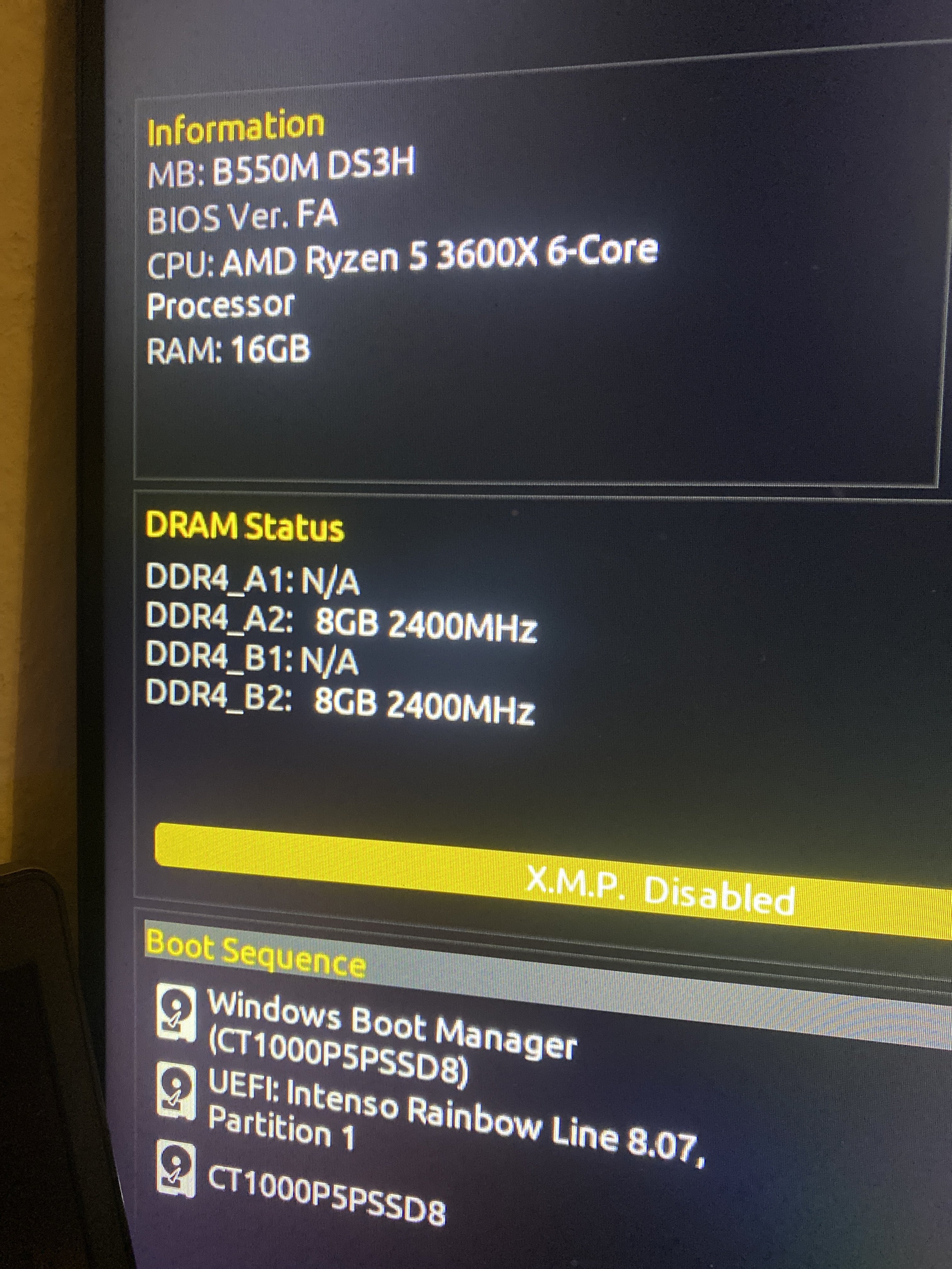 Ich habe es geahnt, wenn der Rest vom PC so konfiguriert ist, so wie das Mainboard eingebaut ist, kann das nichts werden.