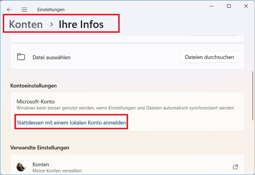 Ich möchte aber nicht, dass meine lokalen Konten in Microsoftkonten umgewandelt werden, wo ich mich immer mit dem Microsoftkonto anmelden müsste. Da wären mir die lokalen Kontos wichtiger. Aber wenn das Verknüpfen ginge…