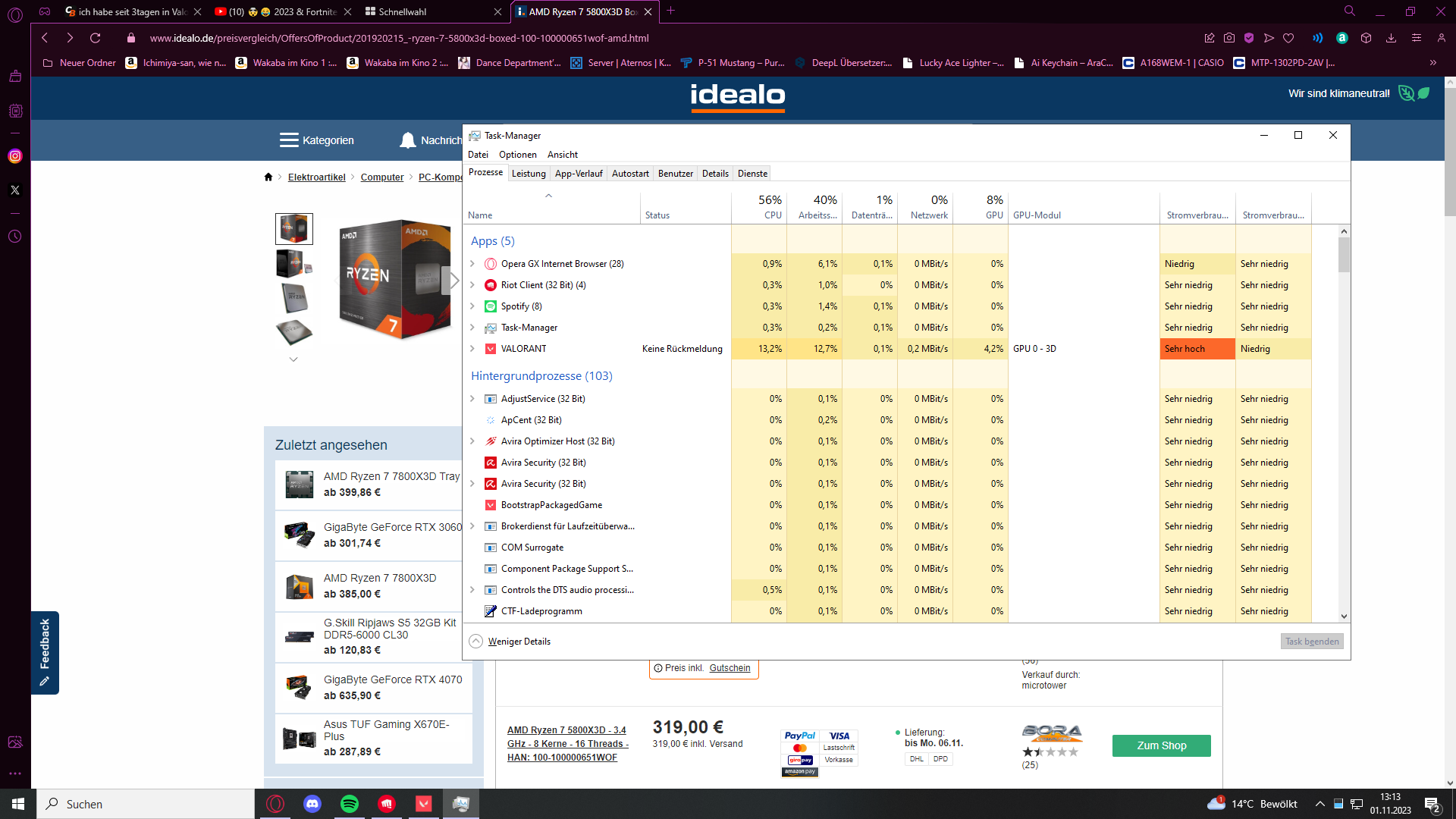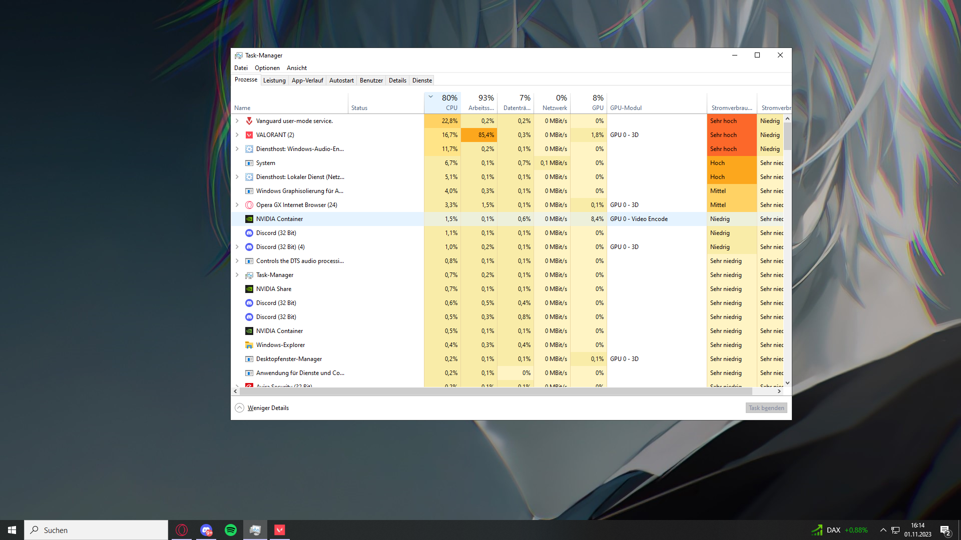 bitteSonyFriend schrieb:nein, nicht auf Leistung, sondern Prozesse wie in deinem ersten Screenshot. Dort bitte auf die Spalte CPU klicken, damit die höchsten Werte oben stehen.