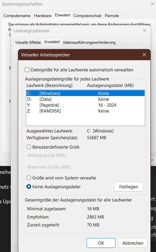 Lege die Auslagerungsdatei mal auf die andere SSD. Wie sieht der Ram aus?