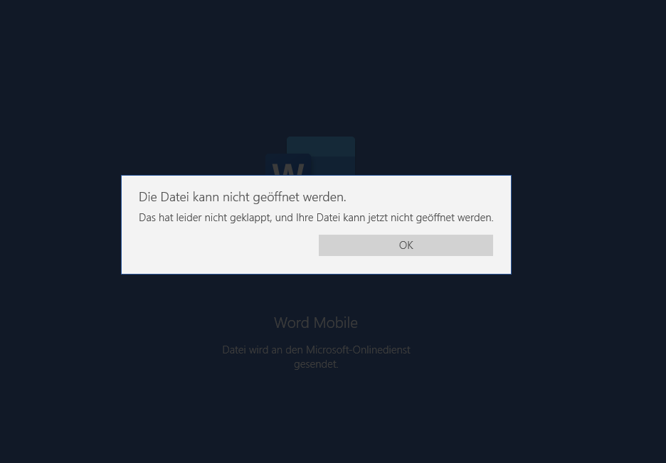 ich habe einen Text auf WordPad verfasst und ihn dann bei Word Mobile gespeichert. Allerdings kann ich die Datei nicht mehr aufrufen, da sie mir immer eine Fehlermeldung angezeigt. Die Fehlermeldung können Sie im Bild sehen.