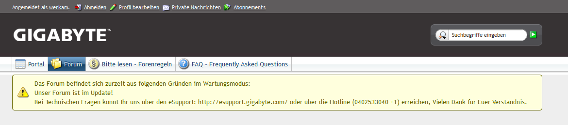 wie oben beschrieben, klappt es nicht. Ich bekomme die Mail zum "Abschliessen" der Anmeldung nicht. Ich habe vor zwei Wochen mich mit meiner regulären Telekom-email bei Gigabyte angemeldet und bekomme wie gesagt, die Abschluss-Mail nicht. Ich kann also im Forum keine wichtige Fragen zu meinem Mainboard stellen. Hier bei CB hatte für main Audio-Problem auch Niemand einer Lösung. Hat hier jemand Erfahrung mit dem Gigabyte-Forum? Ich weiß nicht, was ich noch machen kann. Ich hoffe ich habe ein angemessenes Forum gewählt.