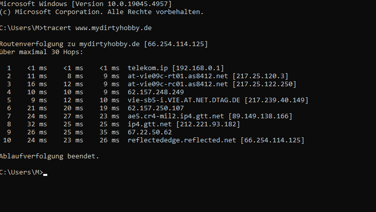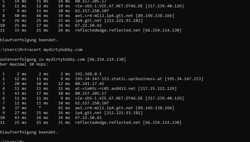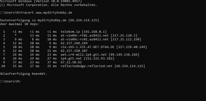 Ja ich wollte eben wissen was das genau bedeutetCoMo schrieb:Was willst du da auswerten? Das ist ein Traceroute zuwww.mydirtyhobby.com. Mehr ist da nicht zu sehen.