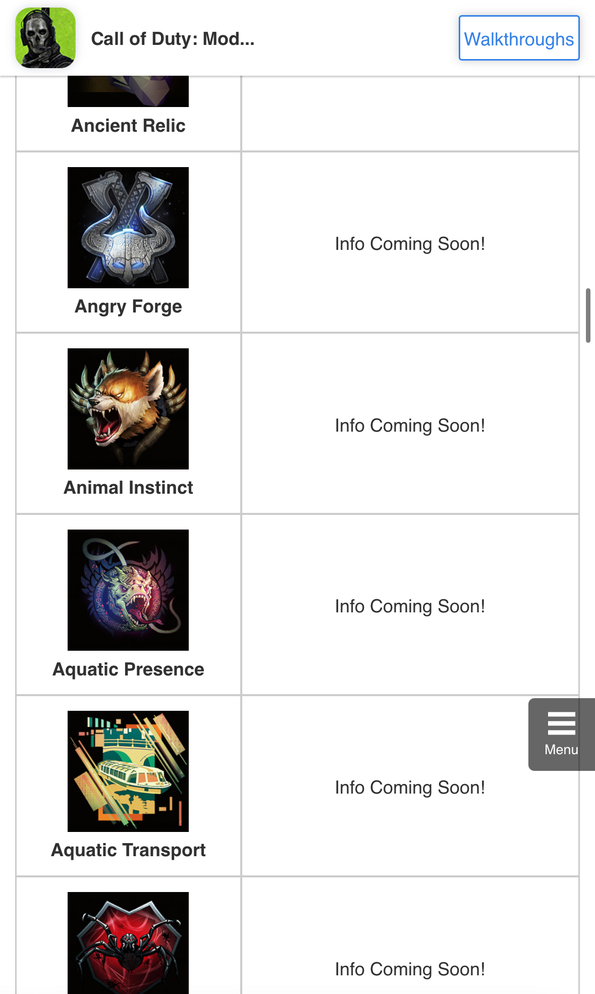 Schau mal auf game8 und dort cod mw 3 Wiki. Da gibt es eine Liste.