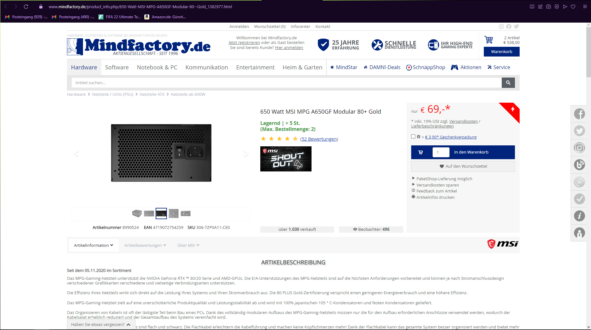 Ich selbst habe derzeit zwei Seasonic GX-850 im Einsatz, emfohlen wurde ein etwas kleineres Modell hier ja auch, das liegt 10 Euro über dem MSI und funktionieren definitiv.