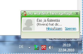 1x hatte seine Kontaktanfrage angenommen, er blieb aber weiß (weiße ICQ-Blume). Als ich ca 2std. wieder reinging in ICQ war er weg. Dann kamen wieder seine Anfragen-.-