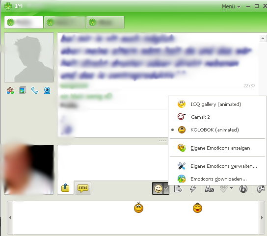 Bei mir fehlen seit neuestem die Smileys im ICQ Fenster - ich kann sie zwar noch anwählen, aber nicht mehr sehen im Auswahl Menü. Das ist verdammt nervig, da ich nicht immer die bekannten normalen Smileys verwenden will ;D