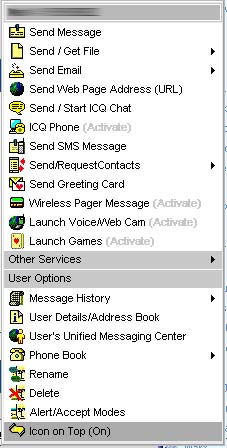 Mit der rechten Maustaste auf den Kontakt klicken und in dem Menü auf "Icon on Top (off)" klicken. Hier ein Screenshot zur Verdeutlichung. ;)