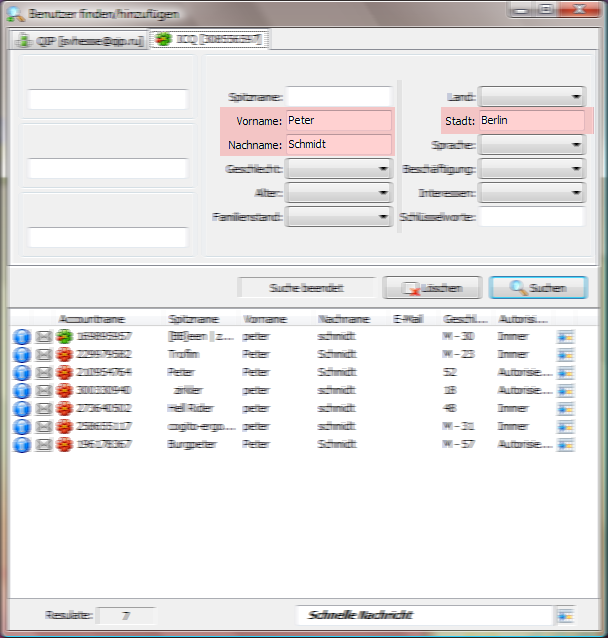 und seit ich mir zwingend das neue icq runterladen sollte gehts nich mehr als wenn ich von jemandem den ich grad kennen gelernt hab schon die email vor-nach-name hab oder den icq namen!wobei es die letzten 3 dinge zu aba tausenden vielfach giebt