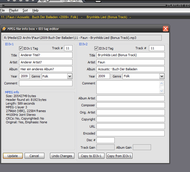 Editieren tue ich meine gesamte Mediathek immer mit iTunes (auf MacOSX) - sprich Cover hinzufügen, Tags editieren etc. Zudem implementiere ich meine Covers jeweils in die entsprechende MP3-Datei. Und eben diese mit iTunes editierte Mediathek wollte ich nun auf meinen Windowsrechner kopieren - doch dieser liest irgendwie die ID3-Tags gelegentlich falsch oder nicht komplett - ich weiß es nicht!