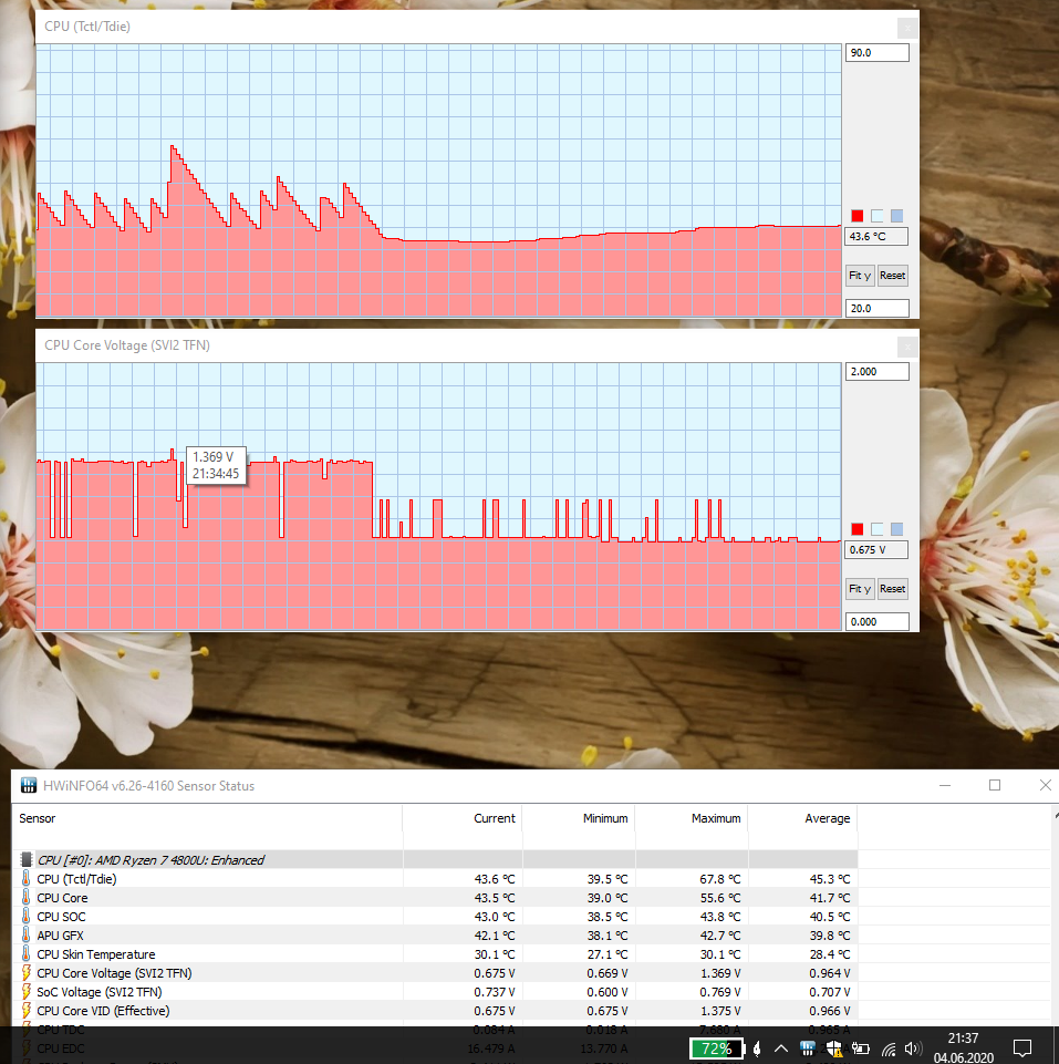 Es ist wichtig HwInfo 6.26 zu nutzen, erst diese unterstützt Renoir richtig. 1,3V VCore kann eigentlich nicht sein, 0,8V hört sich eher realistisch an. Die VCore vom U-Prozessor wird ja nicht 0,2V höher liegen als bei einem HS, welcher auch noch höher taktet.