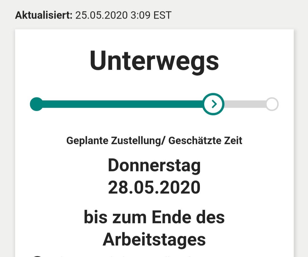 Es scheinen zwei Maschinen oder Fuhren zu werden. Bei meinem steht Ankunft 09:06 und daran hat sich noch nichts geändert.Popey900 schrieb:Freunde, eben gab es den Abfahrtsscan
