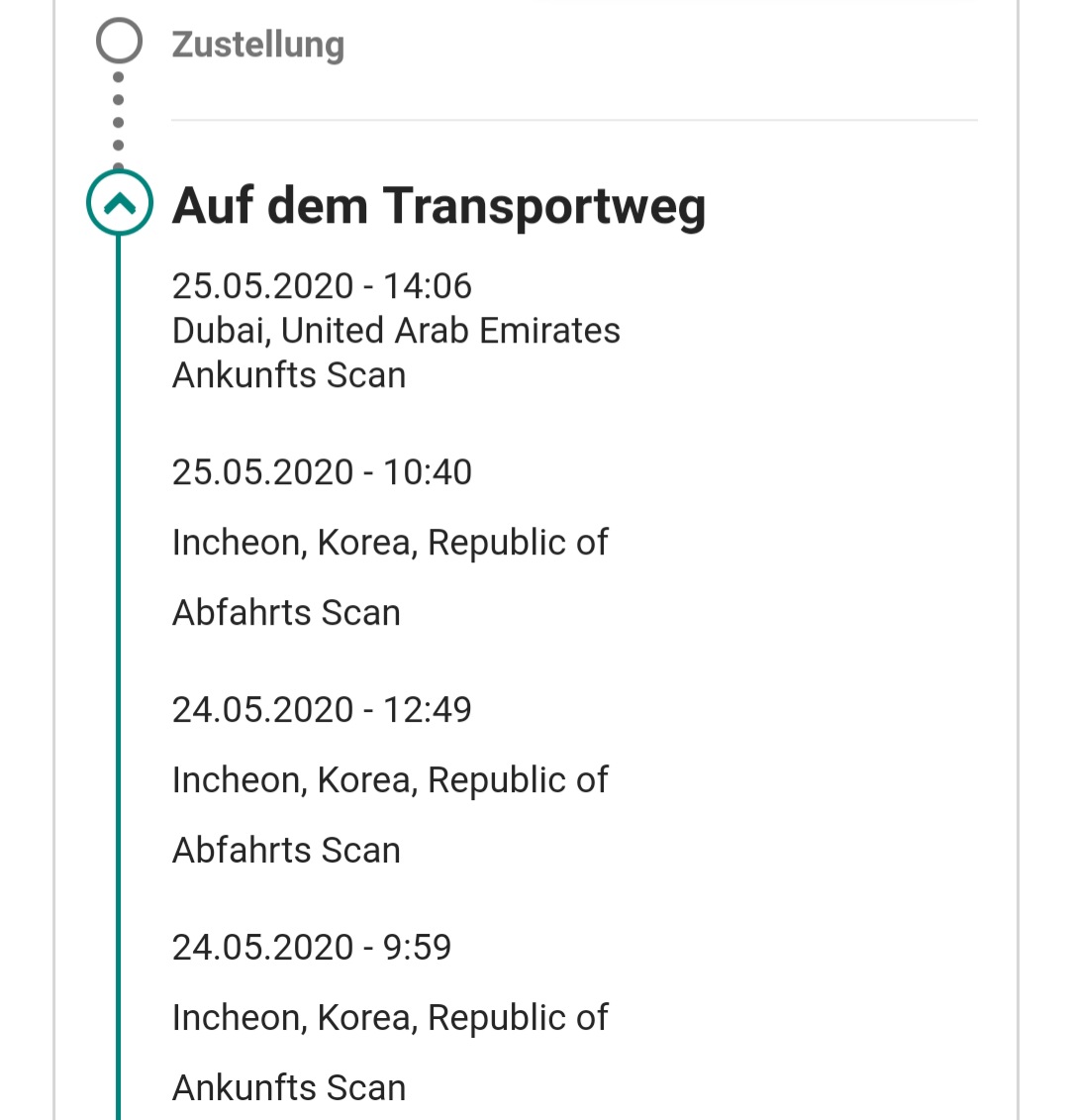 MarcLü schrieb:Der Grund ist nicht erkennbar. Laut Status ist es nach Abfahrts-Scan immer noch in Korea, obwohl man meinen sollte, dass es bereits weiter ist. Vielleicht ist das Flugzeug noch nicht voll genug![]()