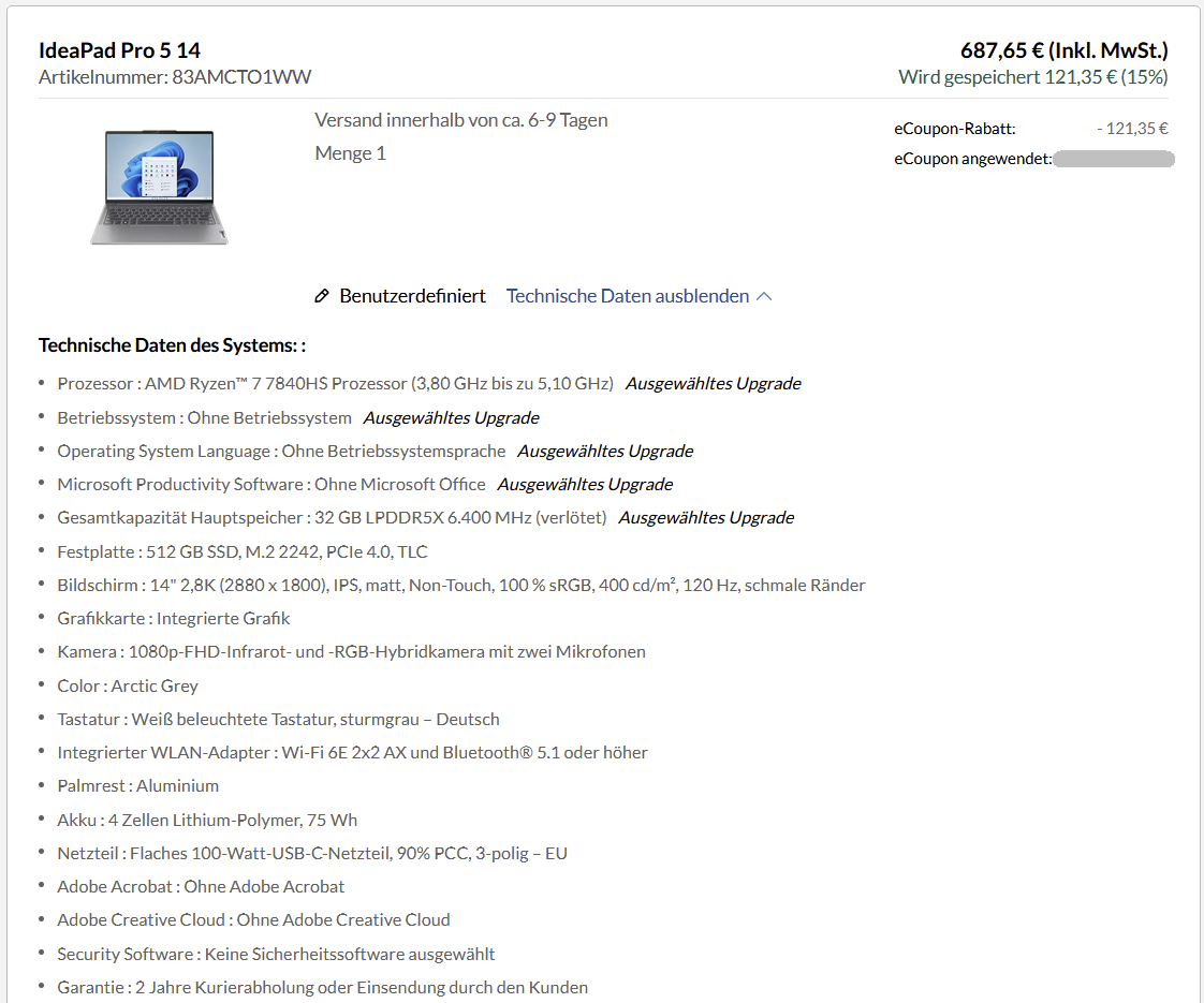 Dann muss Lenovo erst lernen, wie man Lüfterkurven setzt.Drakrochma schrieb:Ich will kein IdeaPad slim, ich will ein IdeaPad fat, dass die Hardware dafür auch unter Dauerlast leise kühlt...