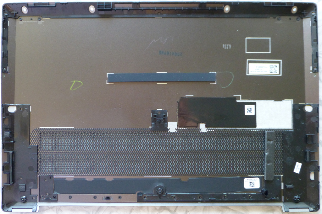 Das Öffnen und das Nachrüsten mit einer 2. SSD ist wärend der Garantiezeit dem Besitzer ausdrücklich erlaubt! Das war aber nicht der Grund mal unter die Haube zu schauen. Ich wollte einfach mal wissen wie ein heutiger moderner Laptop in Vergleich zu einem 5 Jahre altem Gerät innen ausschaut. Durch die immer kleiner werdende Elektronik bleibt für einen größeren Akku mehr Platz. Außerdem sieht man nur die eine Seite der Platine die auch noch auf der anderen Seite bestückt ist. Es wird oft geschrieben daß das Gehäuse aus Aluminium besteht. Hier wird wohl wie sehr oft in der Presse von anderen einfach abgeschrieben ohne den Fakt zu prüfen. Einen echten Alubody kenne ich nur vom MacBook wo aus einen Rohling der Unibody rausgefräßt wird. Das einzige was ich mir wegen der Stabilität aus Alu vorstellen könnte ist der Displaydeckel. Der Boden und die Gehäuseoberschale bestehen definitiv aus Kunststoff. Möglicherweise gibt es einen Trägerrahmen im inneren, aber außenrum ist nur Kunstoff.