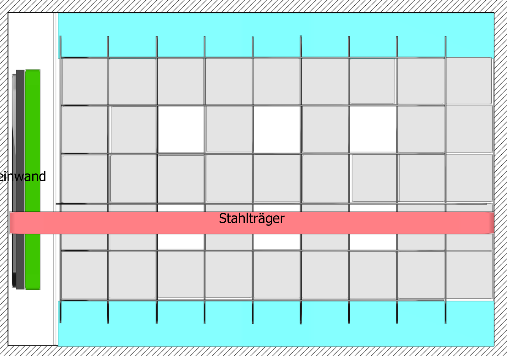 - am Rand (türkis) soll normaler Trockenbau hin mit ein paar LEDS Spots