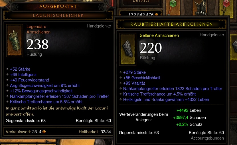Eine Wut mit 1091 DPS, Sockel, 161 Beweglichkeit, 57Critdmg und nun sind 140 Mio Gold auf meinem Konto