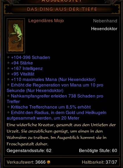 So eigentlich wollte ich gar nicht On gehen heute, aber ich bin dann doch On gegangen und habe mir einen Frosch im AH geschossen. ENDLICH gehöre ich auch zu der >100k dps unbuffed Gruppe --> Jetzt verzichte ich auch gerne wieder auf Vita