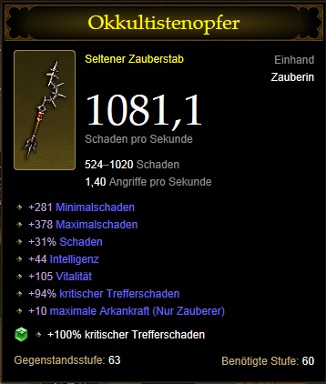 DPS Ansatz vernachlässigen, weil da kommt ein Zauberstab fast nie auf die Werte einer Klingenwaffe und dafür die Auswirkung der Attribute erhöhen.